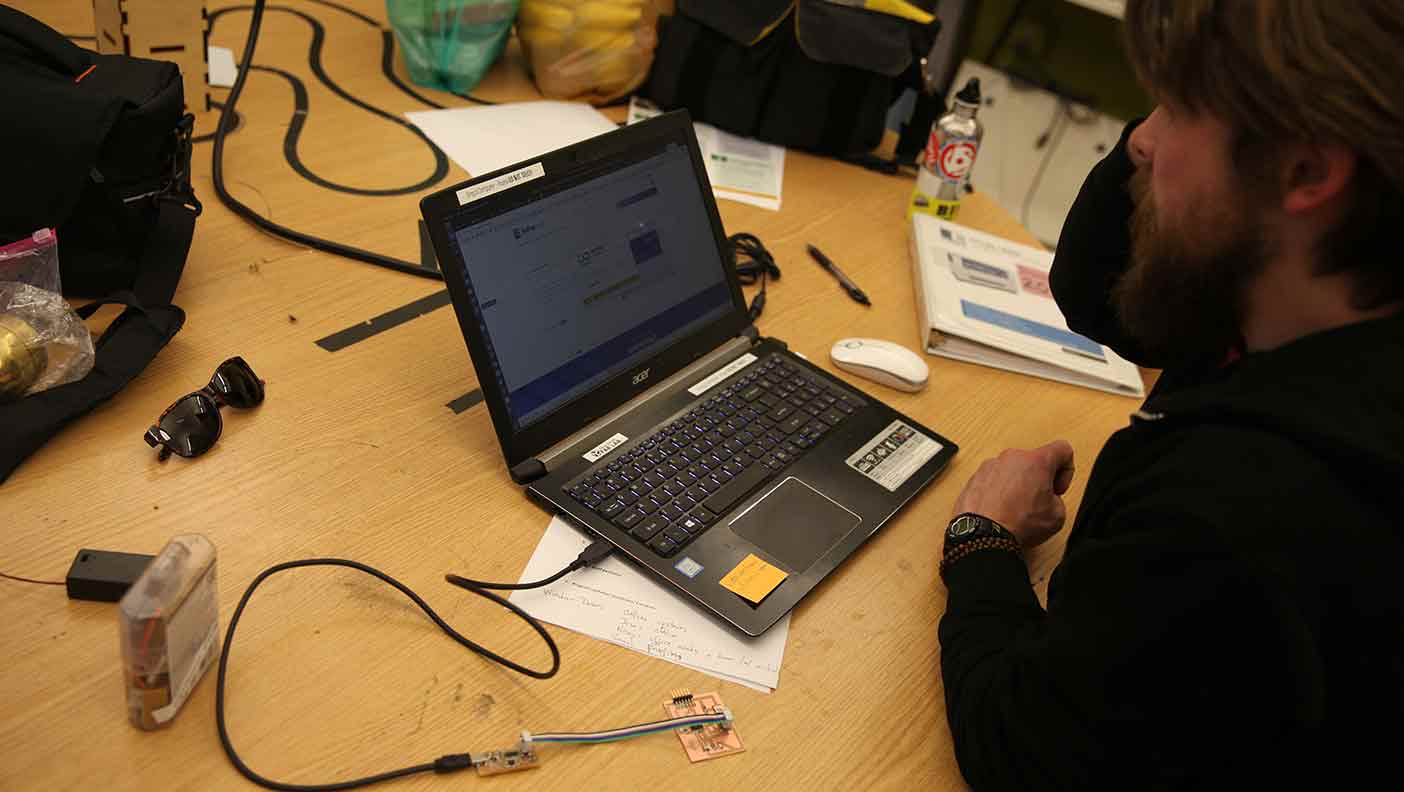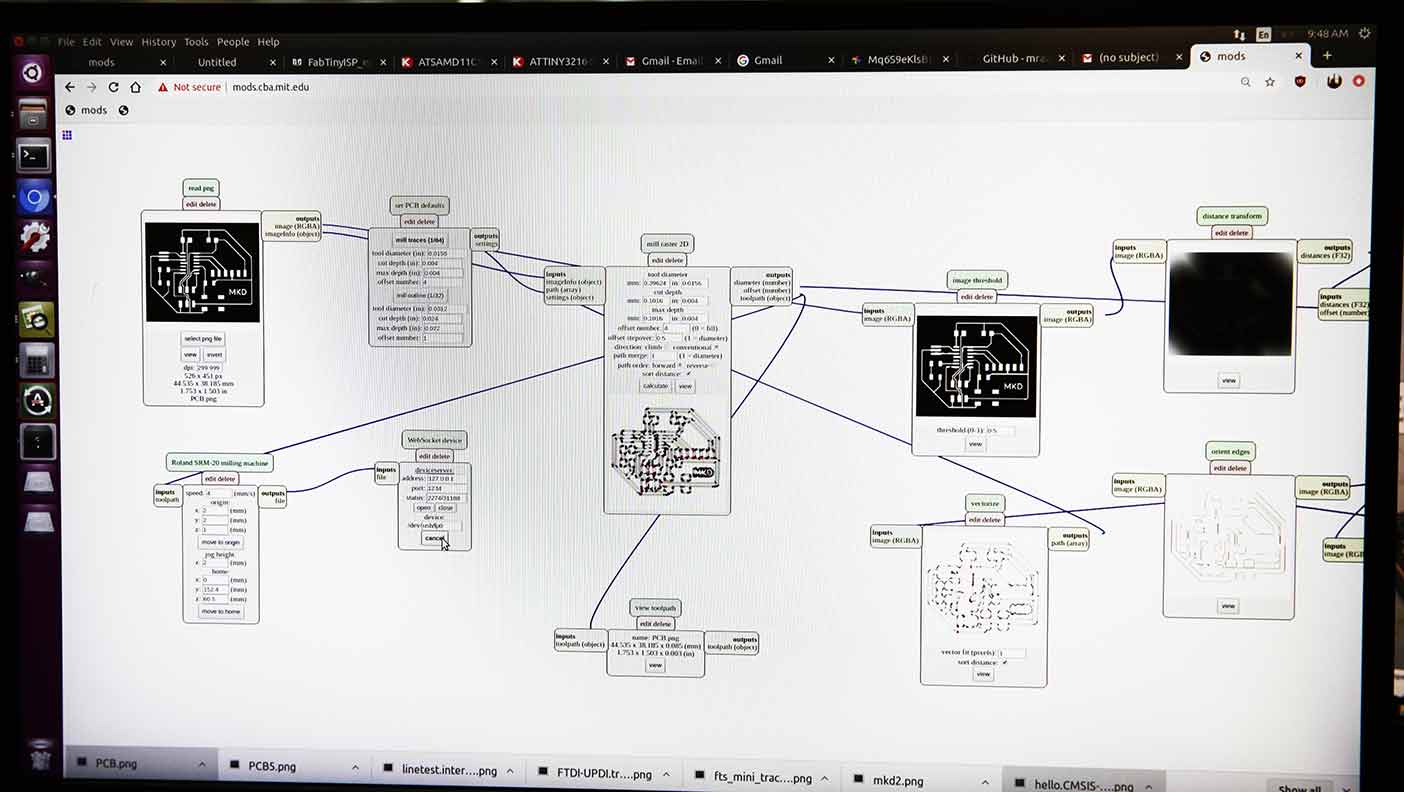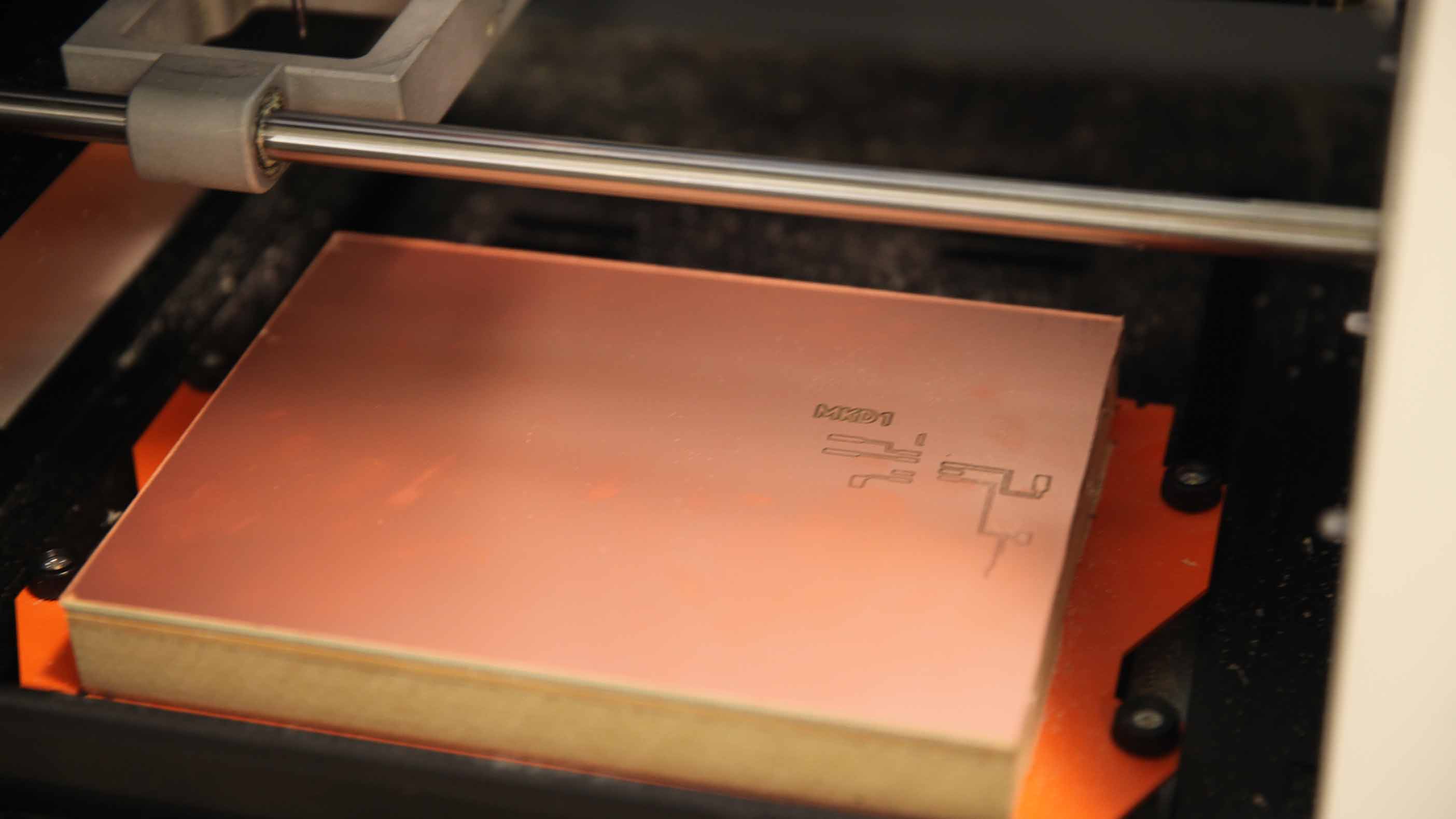 I wondered why we wern't using a reuglar CNC and Greg explained it's because PCB mills have micron level precision. We then cut the board out and Greg began to show us how to solder and collect our parts.