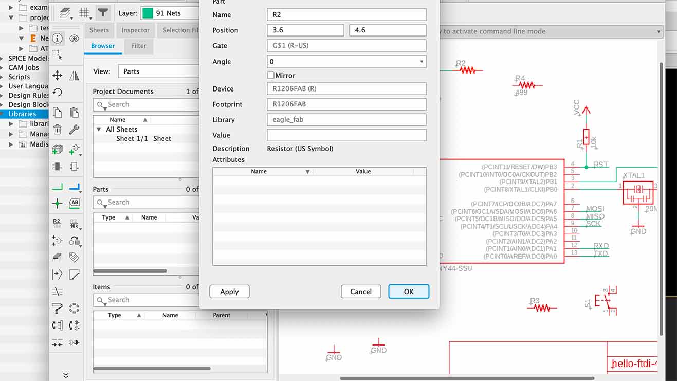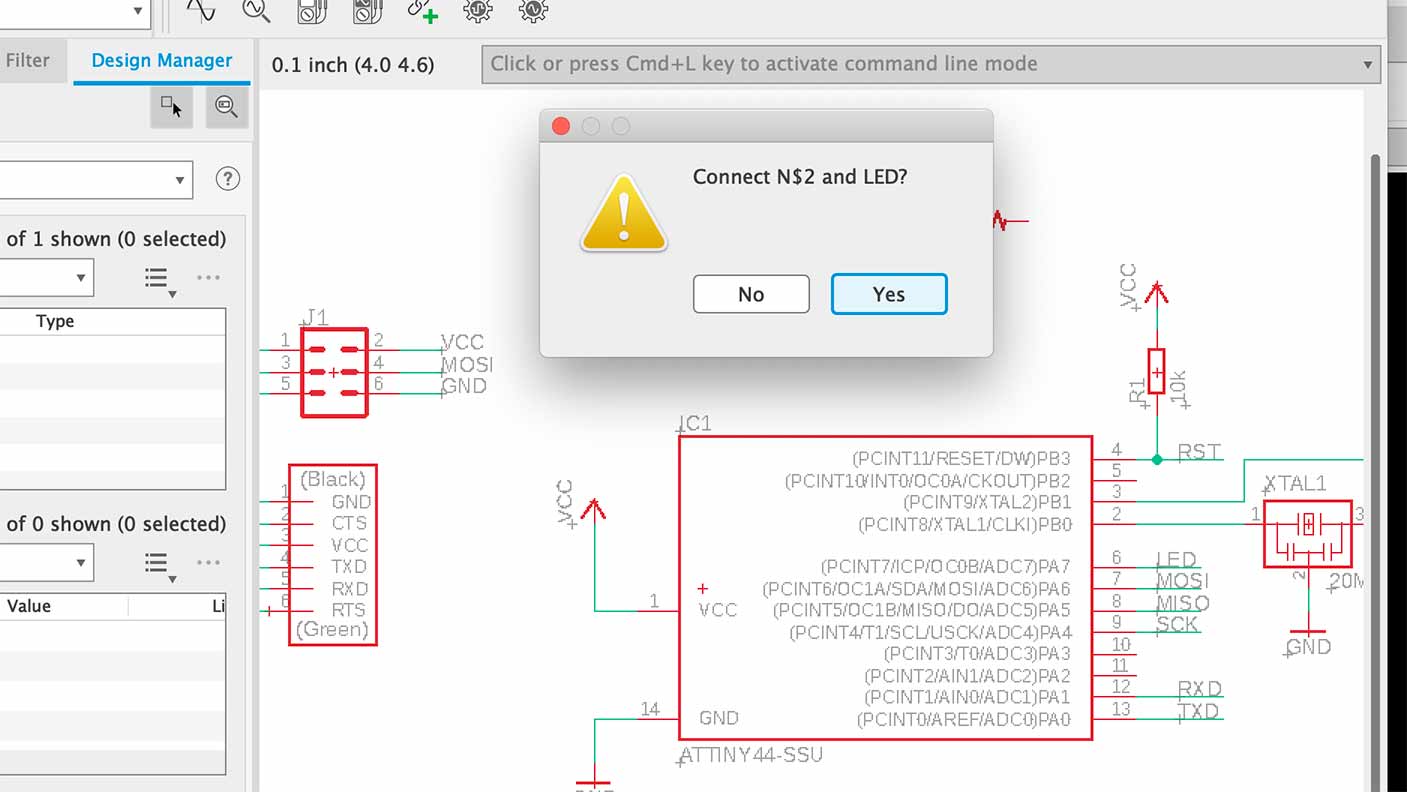 Individual Assignment: redraw an echo hello-world board, add (at least) a button and LED (with current-limiting resistor) check the design rules, make it, and test it extra credit: simulate its operation