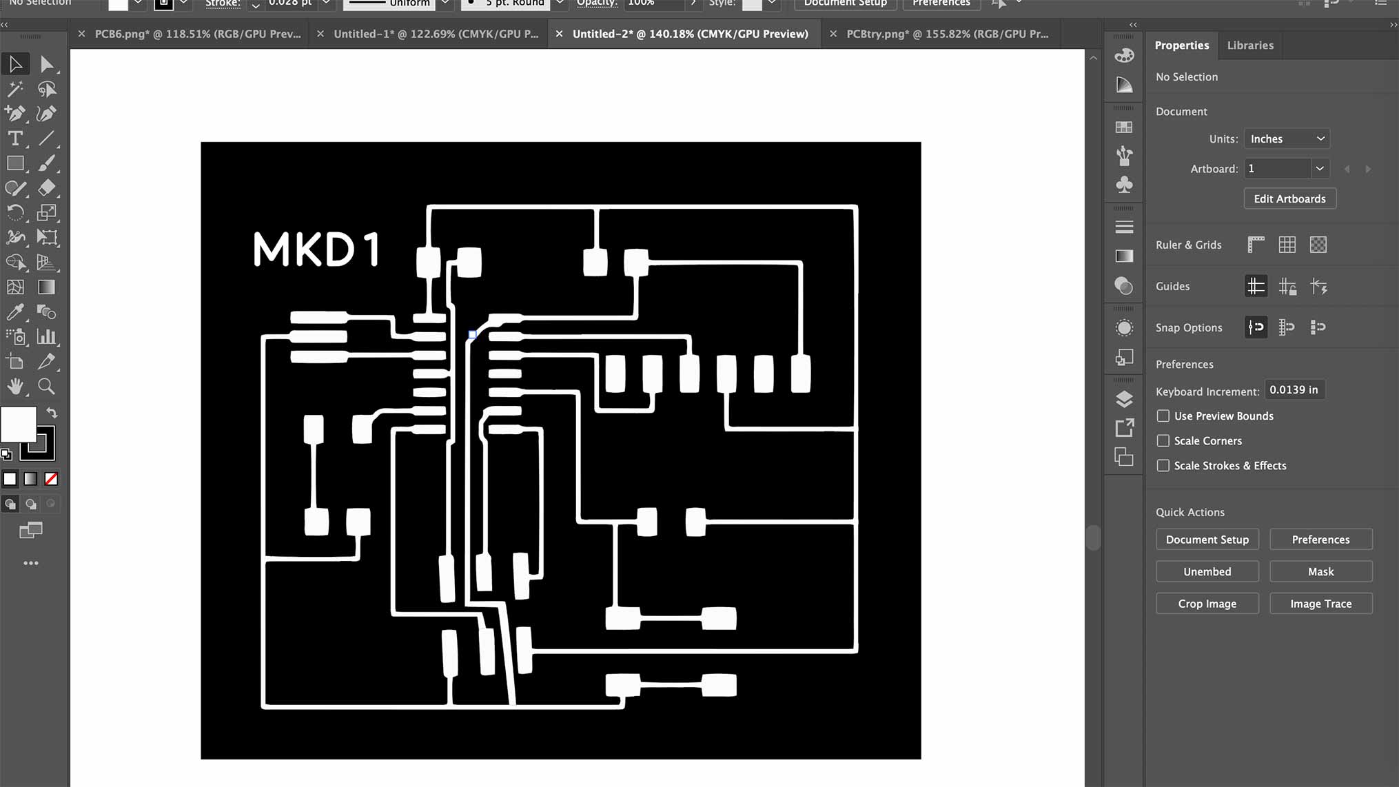 Becuase I was not using the correct 2x3 pin header, my lines wouldn't connect. I was kinda fed up so I brought them into Ai to edit.