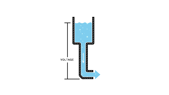 Resistance is kind of like how much water can get through the tube... or how much charge can go through something at once. This brings us to Georg Ohm's Law called Ohm's Law. In equations, Ohms looks like the Lululemon logo, Ω. Voltage = Current x Resistance