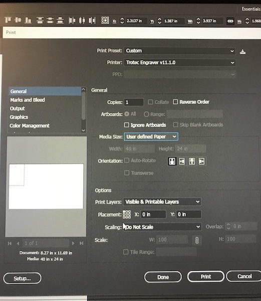 Then tutorial also suggests to use ‘edge’ and not ‘roll’ if we are using a roll. Then we need to report the size to the program. We do: - Go to File > Cutting Setup. - To the right of the printer’s name, click on Properties. - In the Size tab, click “Get from Machine.” - Resize your image as desired given the updated dimensions of the CutStudio project’s artboard. - Hit Print!