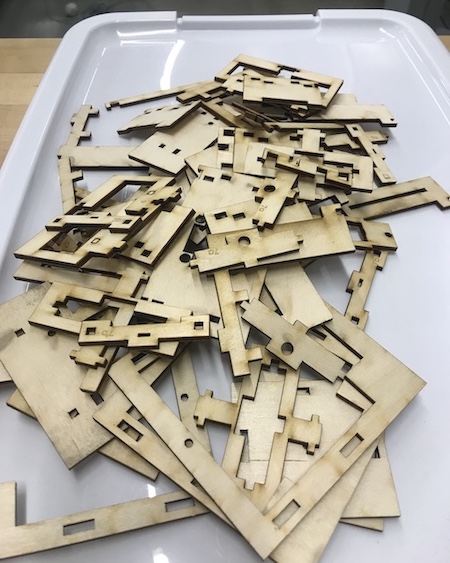 Then it was the turn of the playwood 3mm. I cut some pieces of a microscope created by the Waag Society in Amsterdam.