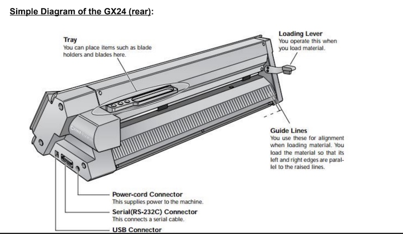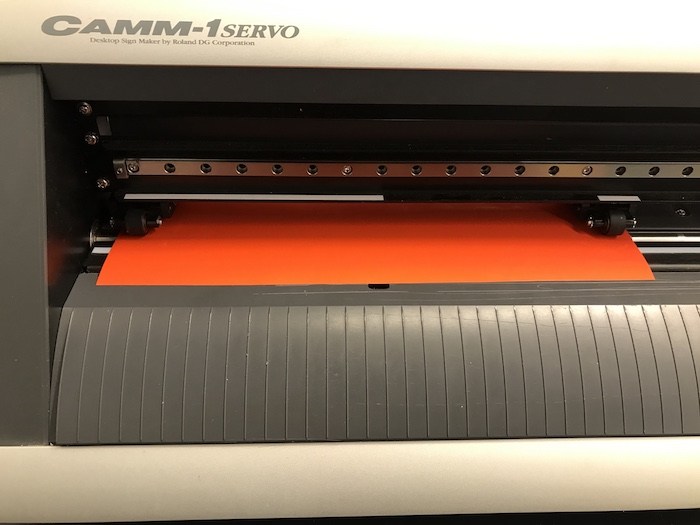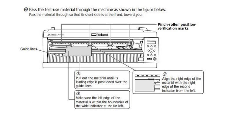- Pass the material face-up (color side up) through the back of the cutter to the front.