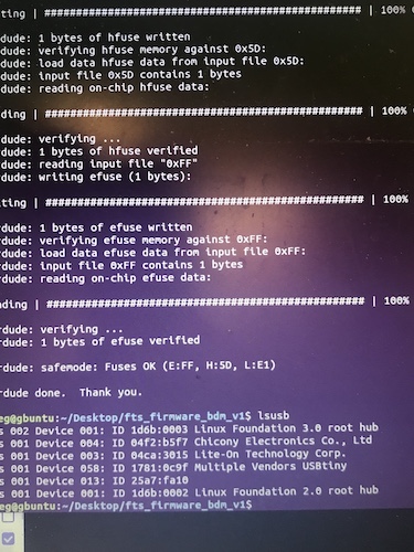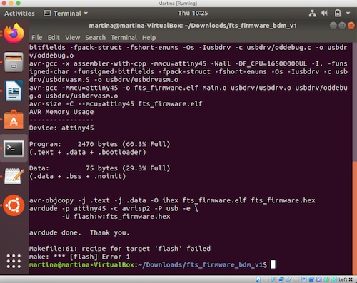 Anyway, in this way, the ‘make’ command worked and I was able to created the fts_firmware.hex file.