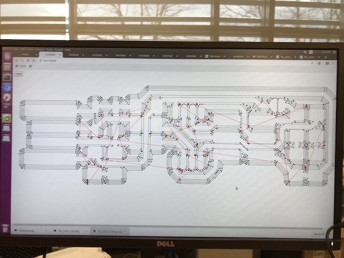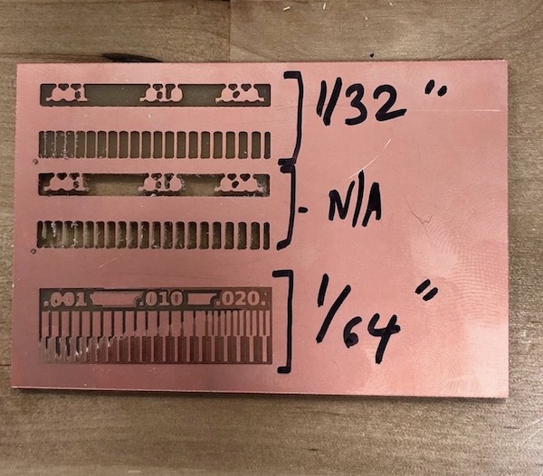 The group assignment for this week was to characterize the design rules for our PCB production process. To do this, we traced the image in the assignments using a 1/64 inch bit and a 1/32 inch bit. This was still our first trial with the milling machine, so the traces did not come out nicely. Yet, it gave us some idea of the different use of the 2 bits.