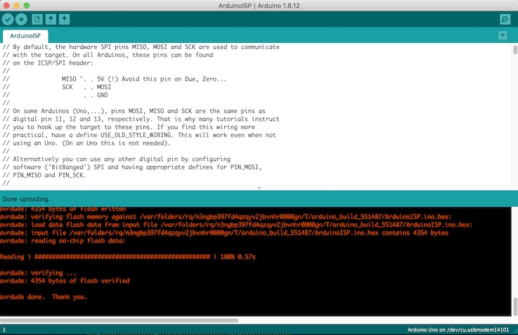 As I got an arduino shipped home and by board did not seem to work anymore, I wanted to check out if Arduino worked as ISP.