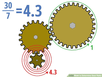 Now there is a problem. A gear of 84 teeth would be pretty big! To avoid making such a big gear, it is possible to use 3 or gears instead of 2 as long as the ratio stays the same.