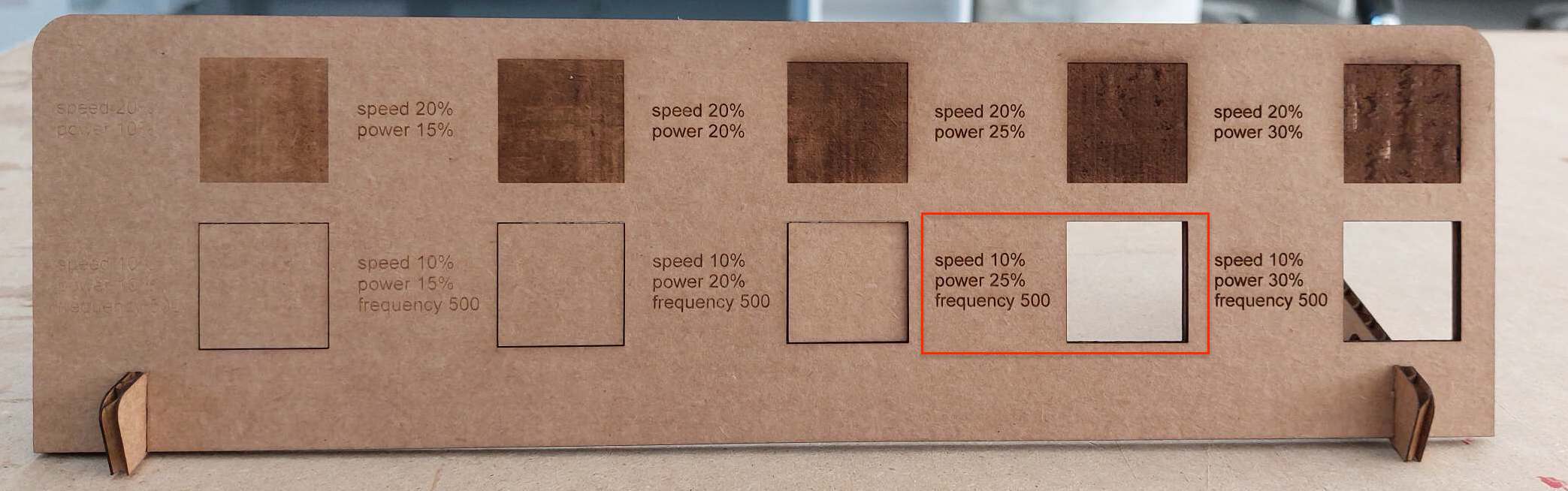 I'll go through the same process again, but before cutting the whole board I did a test and found out that I need to increase the power by 5% and found the results to be excellent.