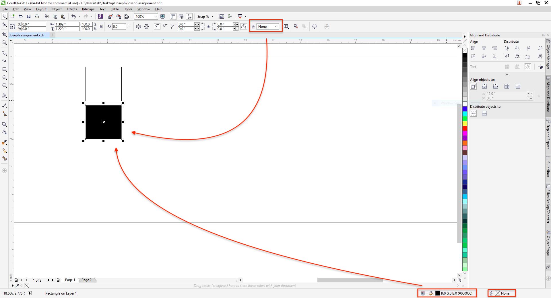 - Draw a smaller rectangle and center align it with the square.