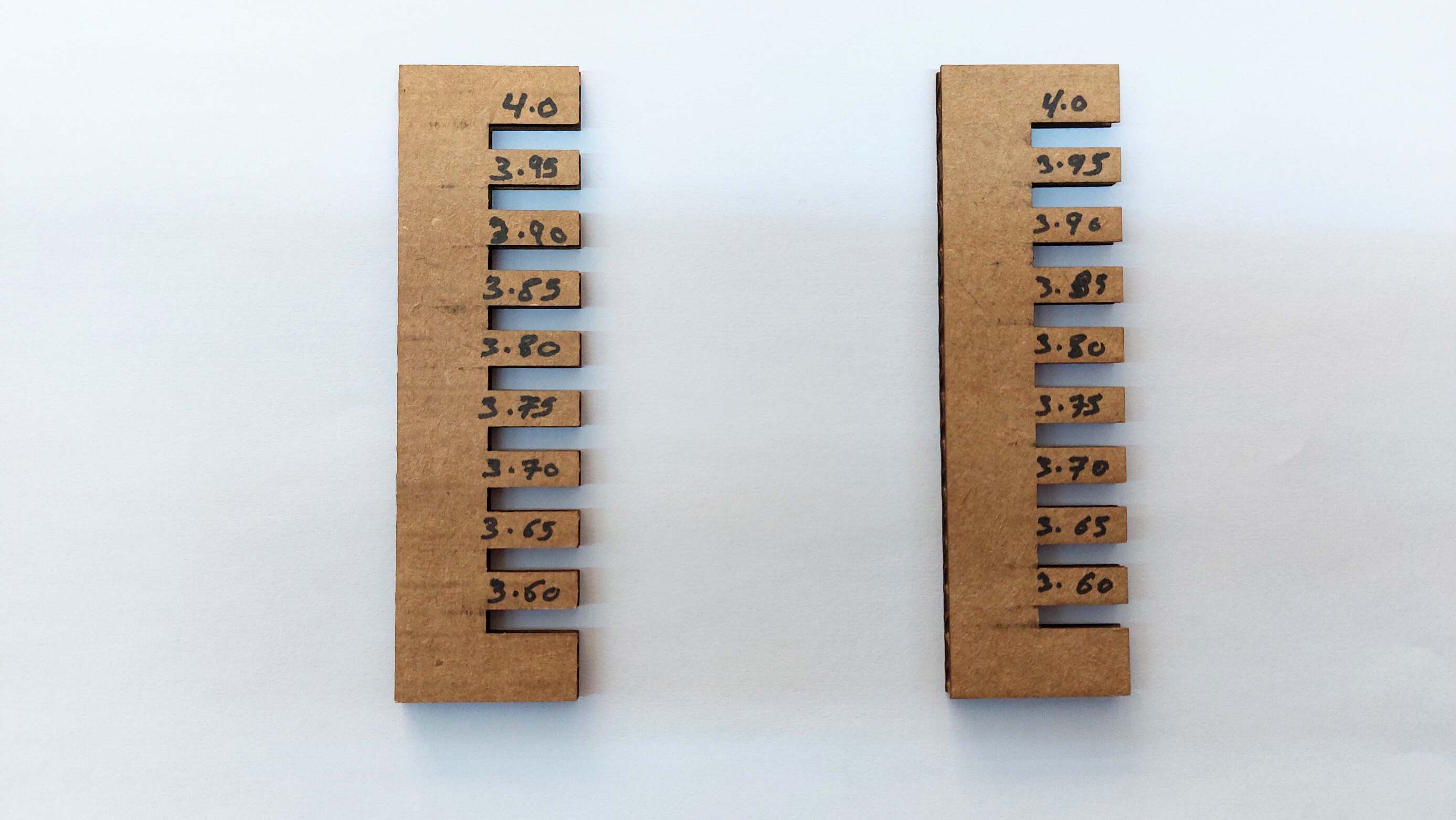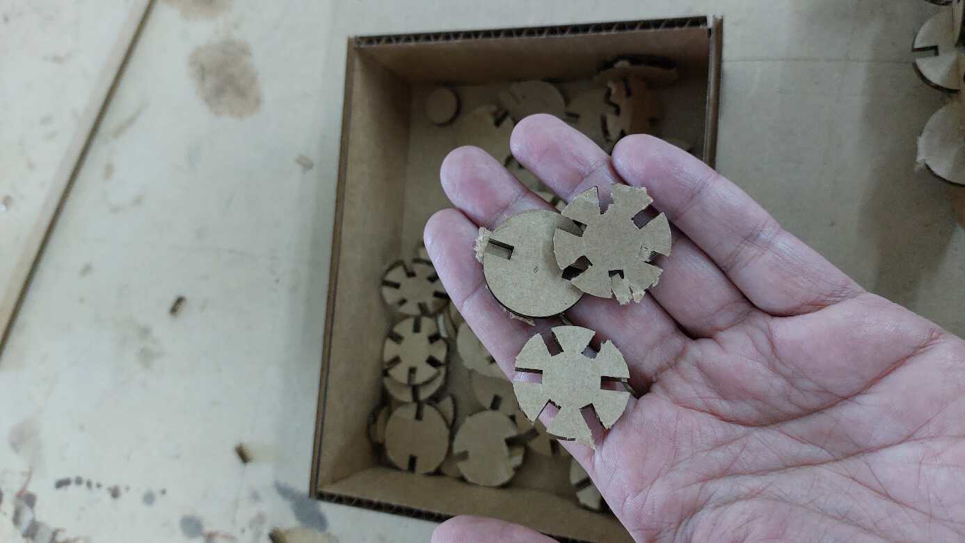 The after cutting the sheet which I designed beforehand on OpenSCAD we found out this the value of 3.60 mm is the the best overall because it fit perfectly, I will use this number for my press fit kit.