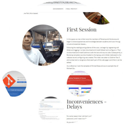 The collaboration between tutor and colleagues has been wonderful, especially because we are from different specialties or trades. For image editing use the Gimp software, which was excellent for the versatility it offers.