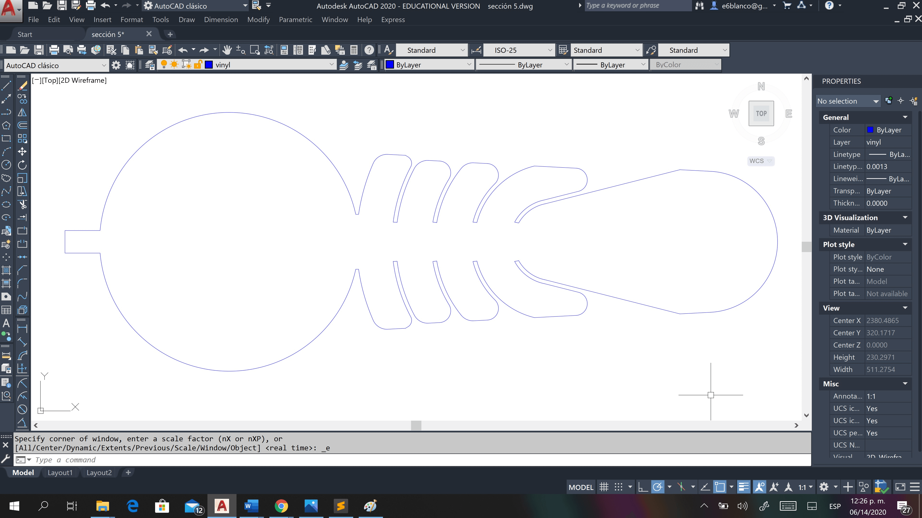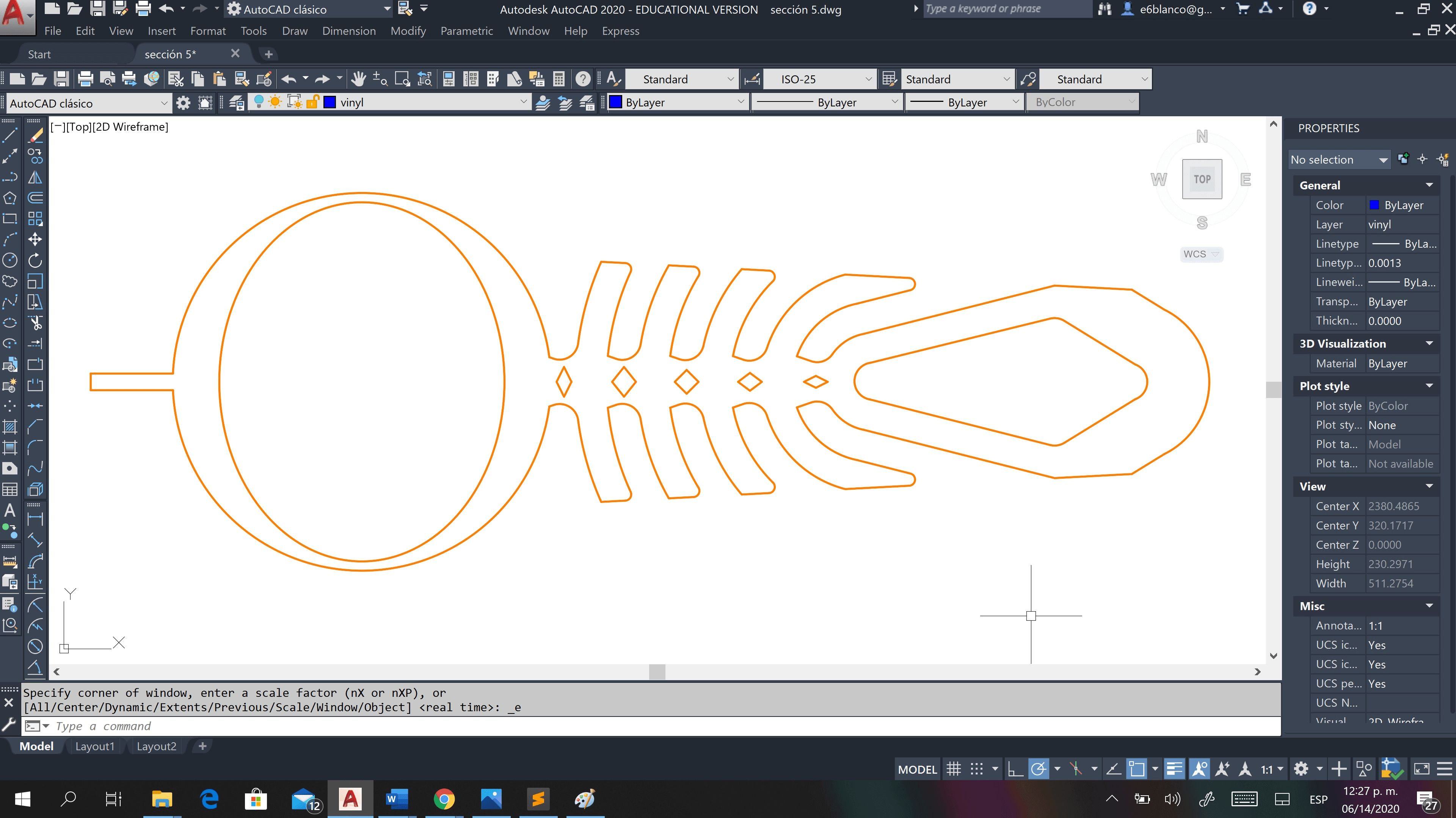 Save the file worked in AutoCAD from dwg format to dxf (mm). It is necessary to clarify that the file to work here is the one found under the layer vinyl (object outline), 2 identical pieces of this model must be made.