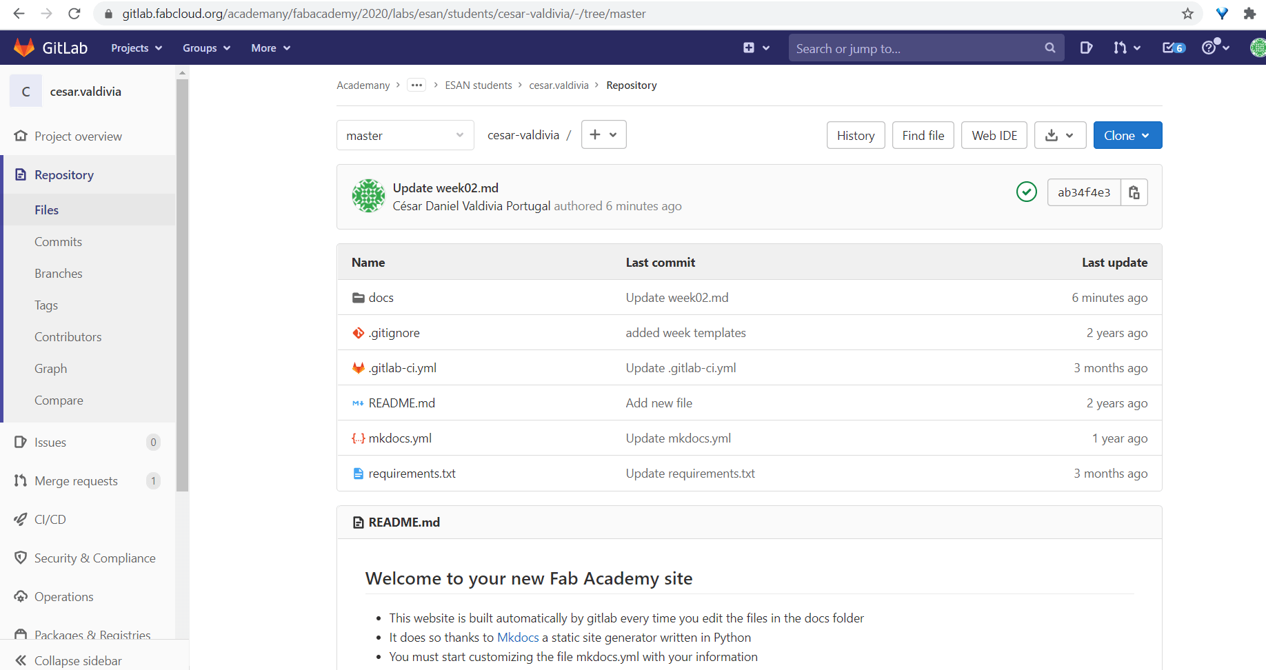 The day began with Neil Gershenfeld remote class, to explain to the participants the importance of the documentation system for the Academy. Then we began the job in the local environment to practice the creation of GIT , MkDocs and the organization of documentation in the respective repository. The practice session started singing in the Gitlab while the user received from academany IT. Then we began the job in the local environment to practice the creation of GIT , MkDocs and the organization of documentation in the repository of respect.