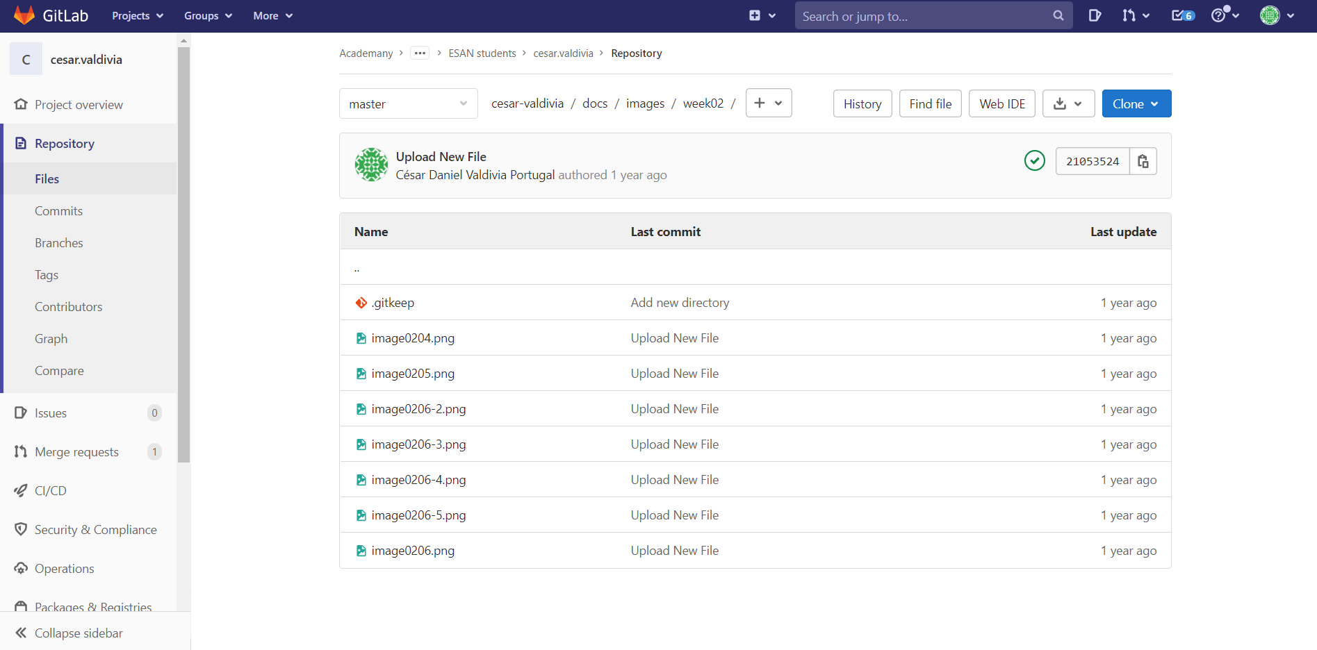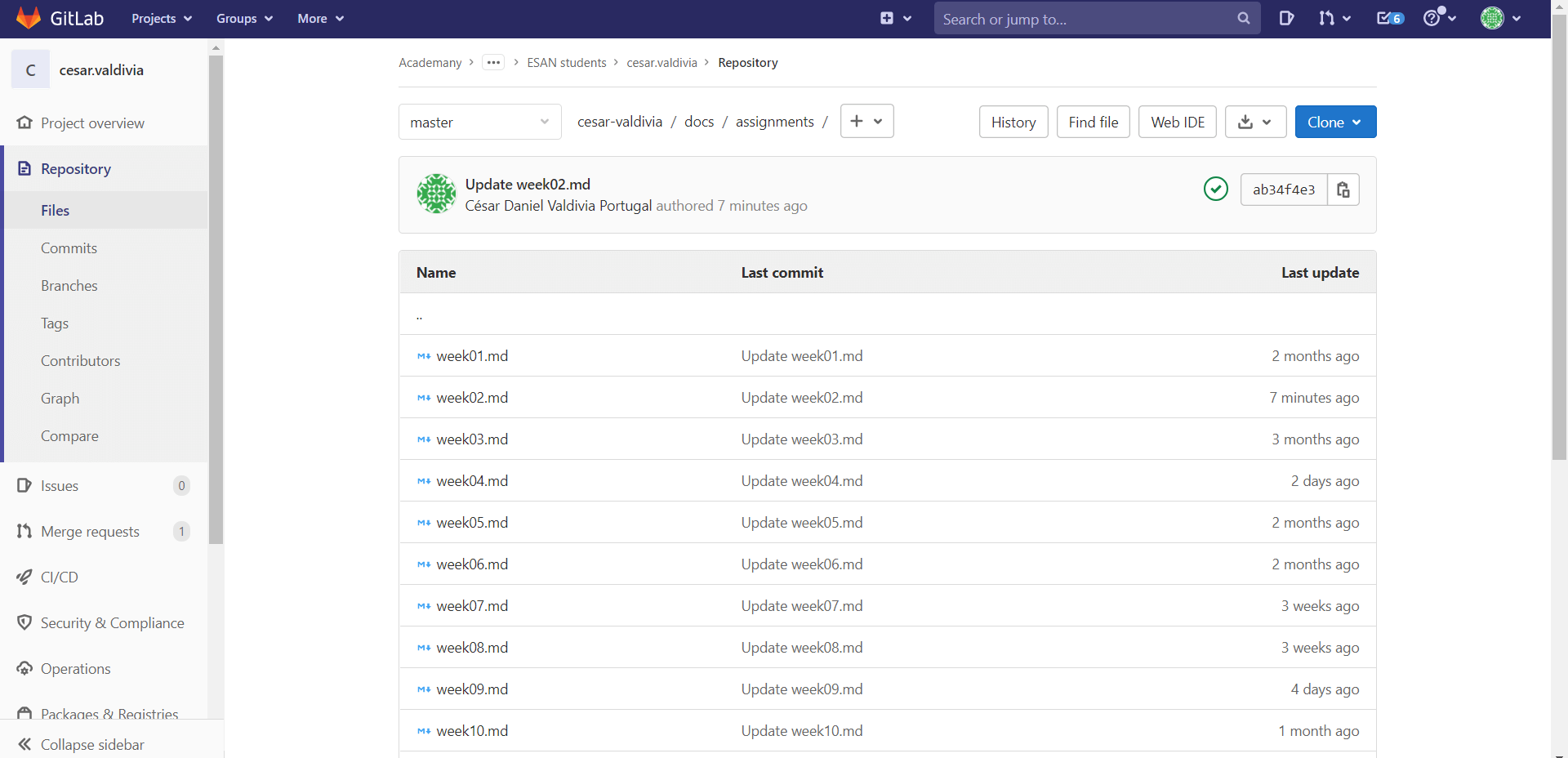 Next I will guide you about the steps that must be followed to upload content to the page through GitLab, first we must enter our username and password and we will find ourselves in this main screen, I consider that the most important options are the window of the left called Project overview since we can visualize different events related to the changes made in our repository.