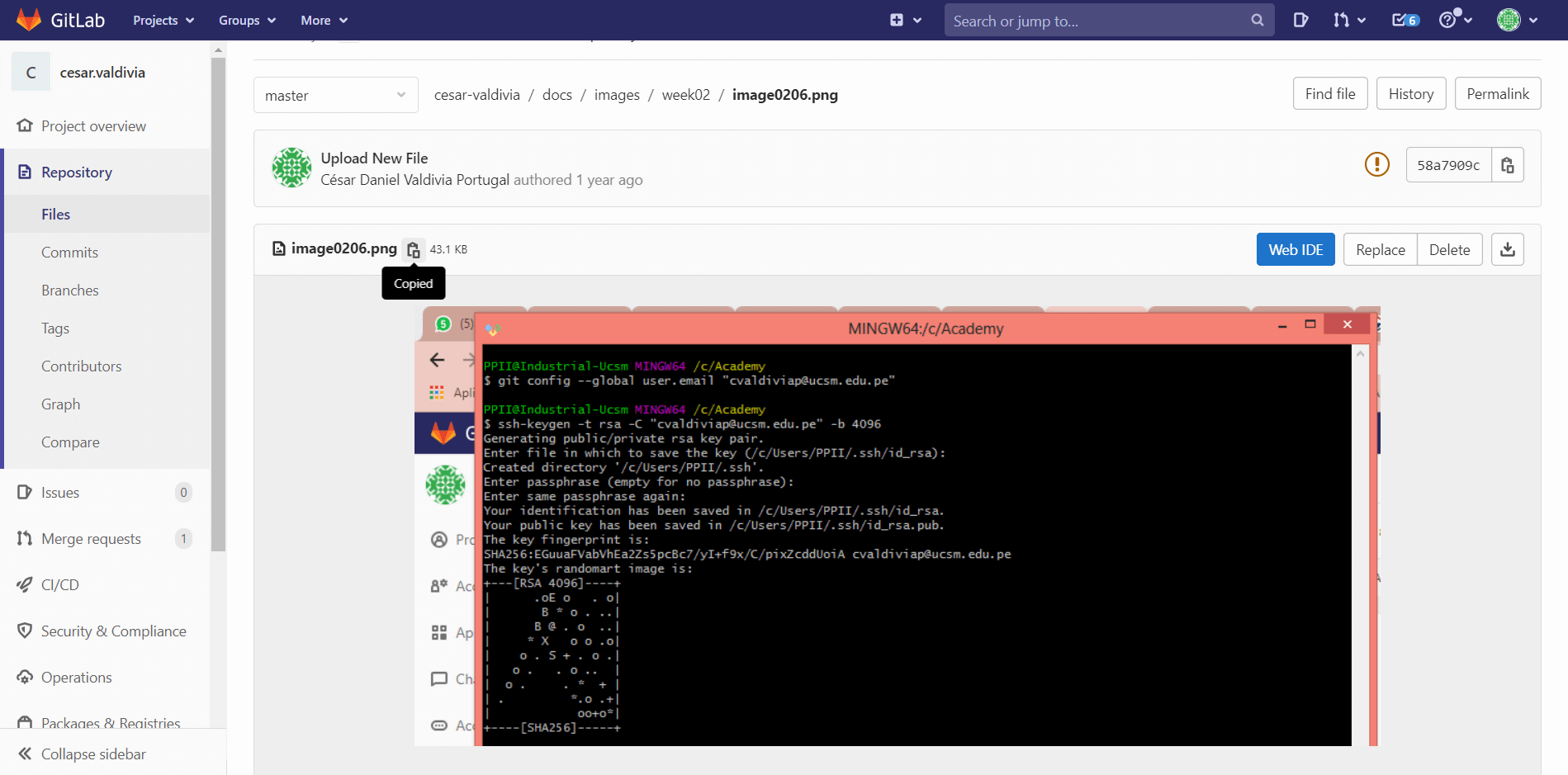 It command allow me obtain a key to access to gitlab, and used to access safely in synchronization between git bash and gitlab.