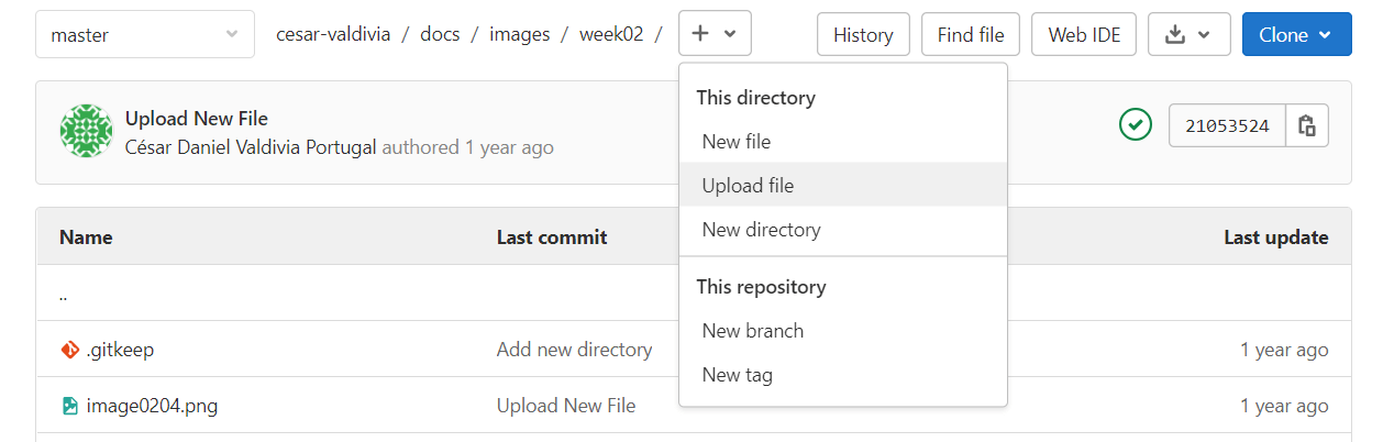 Once everything necessary to add text to our page has been defined, we can proceed to add multimedia content, in this case images, but these steps can be replicated for any type of file accepted by GitLab, we must remember that memory space is very valuable, That is why it is recommended that each assignment does not exceed 10mB, to achieve that we must use programs that compress the size of our image and video files, in this case I use TinyJPG to compress my images.