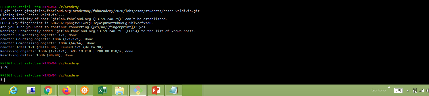 Is time to create a copy of the master repository from the cloud to local desktop. Git allow work in local way while make the changes and update the master on the cloud when it´s ok, make it I used the clone command.
