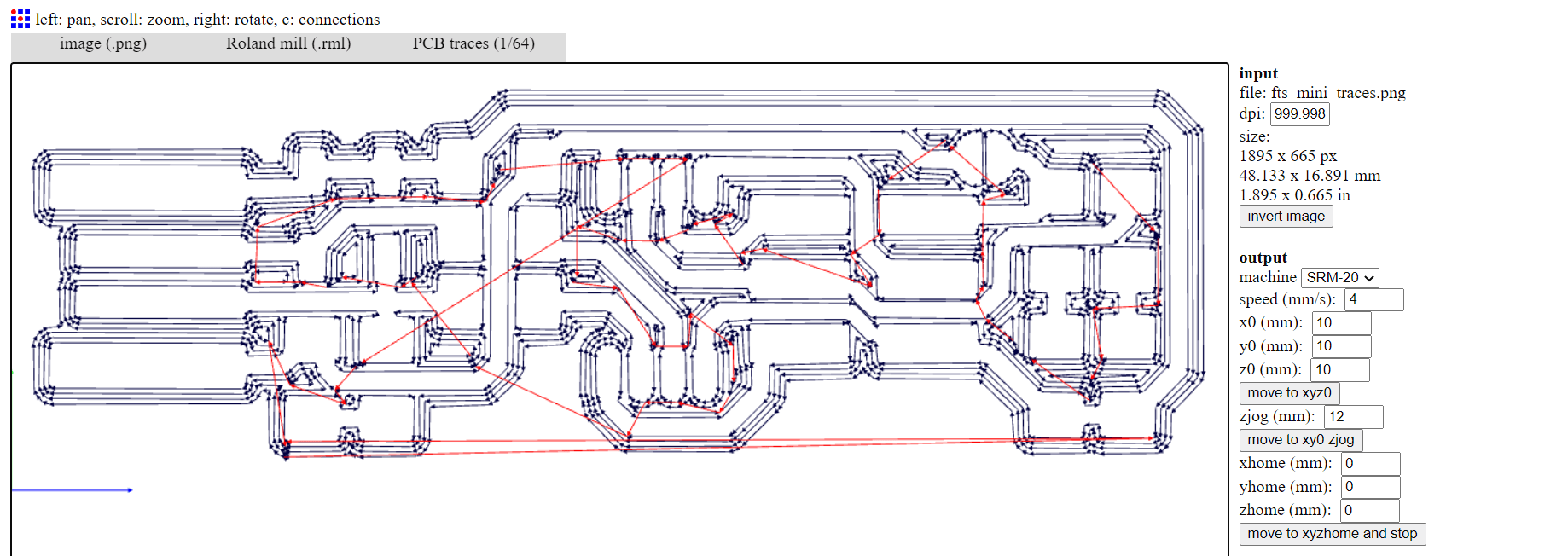 Since the task consists of milling a PCB, we must identify the resolution that the Roland SRM-20 gives us, with that information we can determine the minimum thickness of the traces to elaborate our in-circuit programmer.