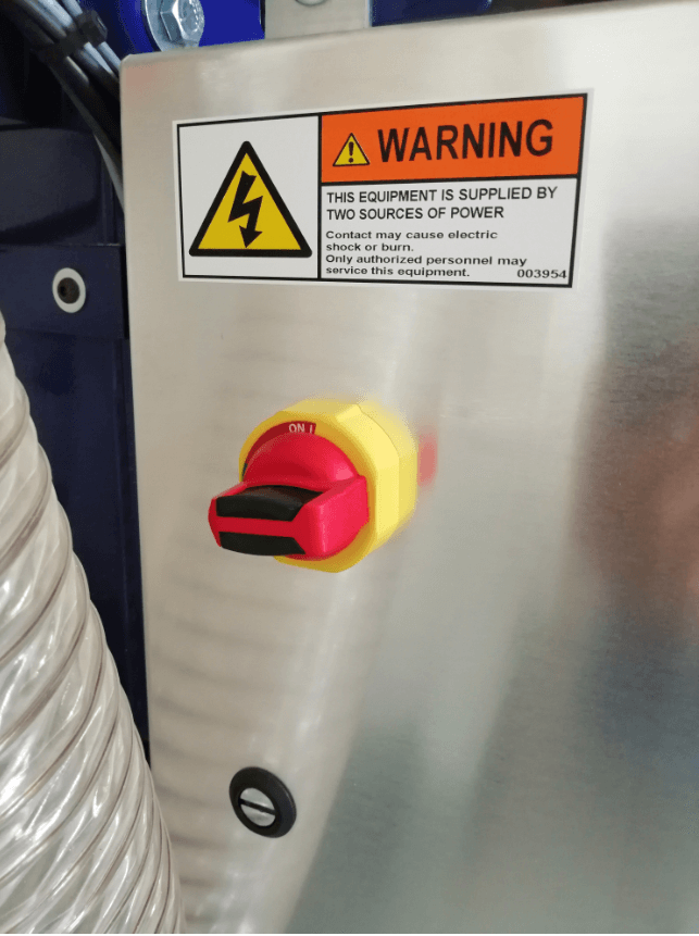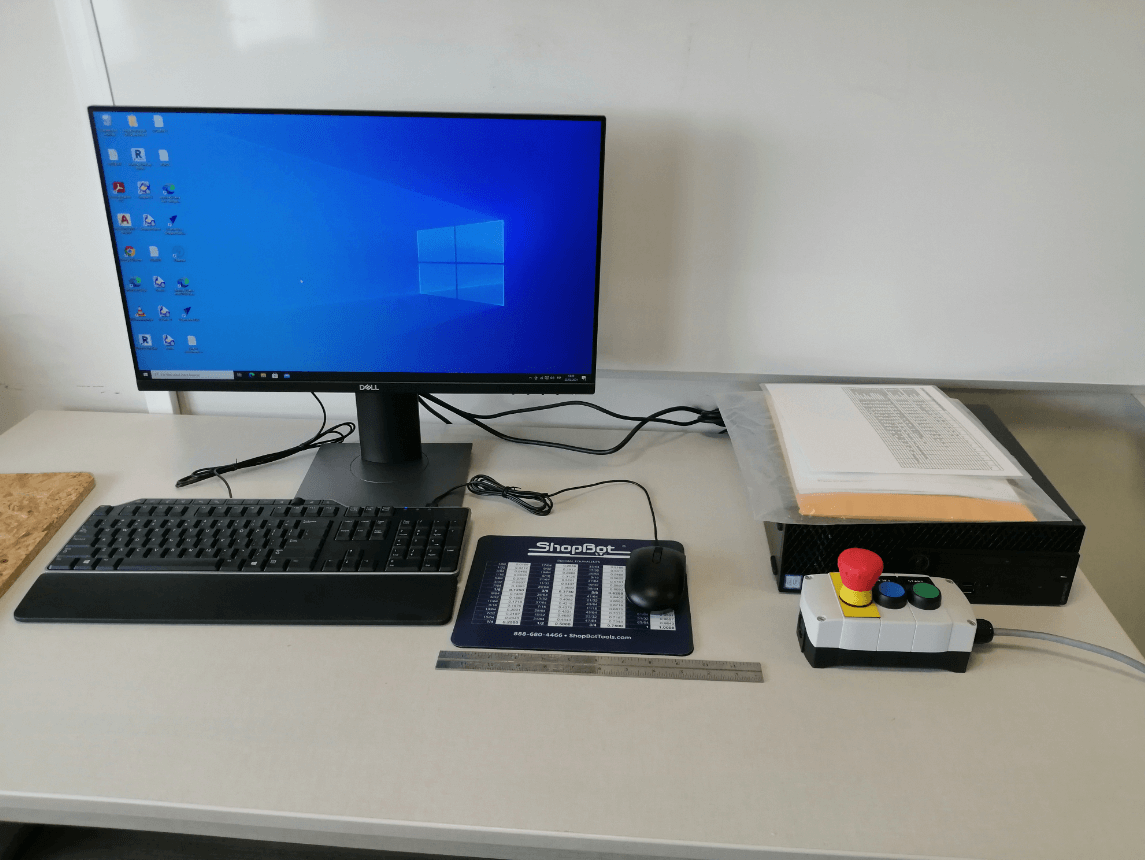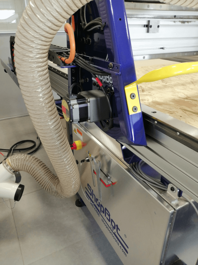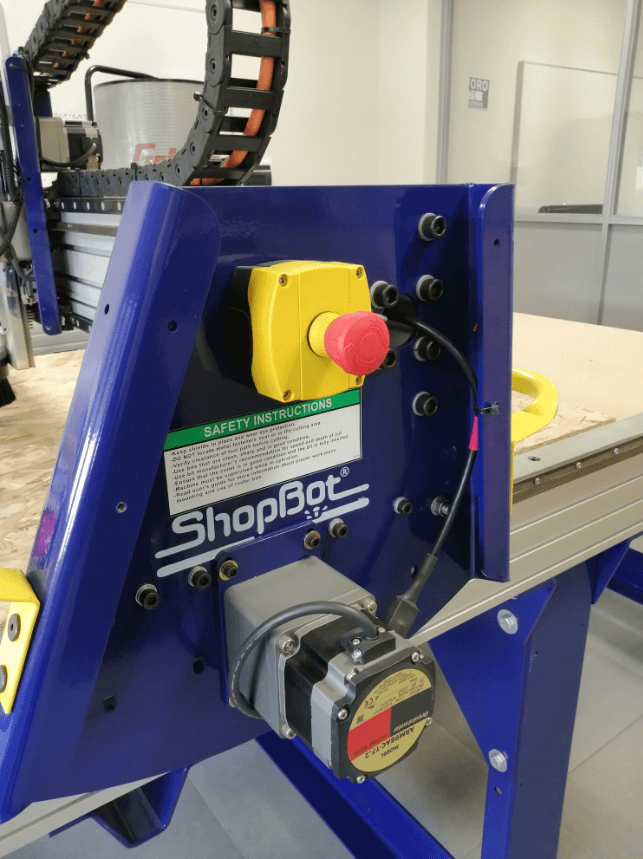 Shopbot also has emergency switches, we must remember where these buttons are located so that in the event of any unforeseen event we can press them as quickly as possible and thus avoid damage to the machine or person, for efficiency reasons we place the main controller next to the PC so that the Shopbot can be stopped by the program or by using the emergency button.