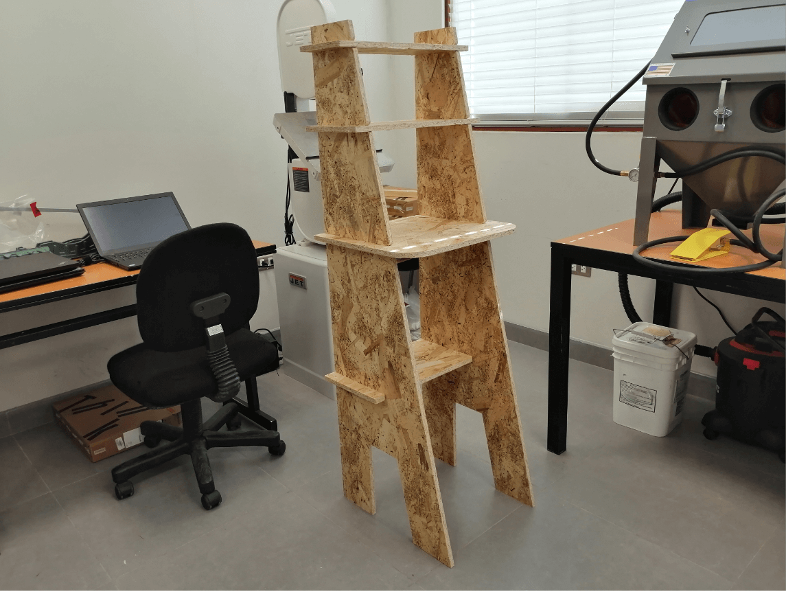 The application of this furniture may vary since the dimensions that we assign also allow us to place a laptop on top and could help us to place it in a more comfortable position to perform a scan or perhaps load parameters to another machine and in the spaces lower place tools or something else that we see fit.