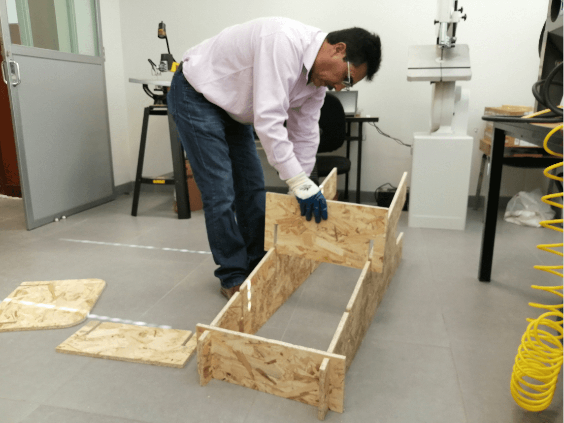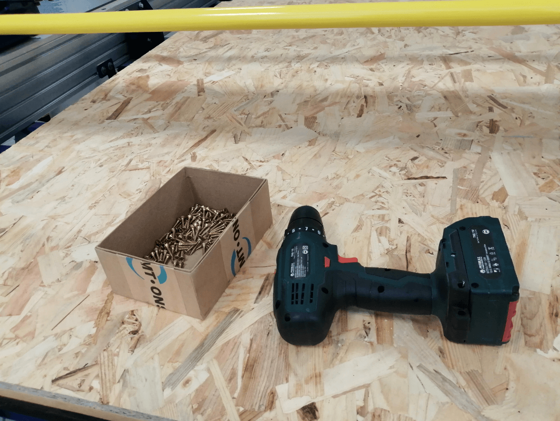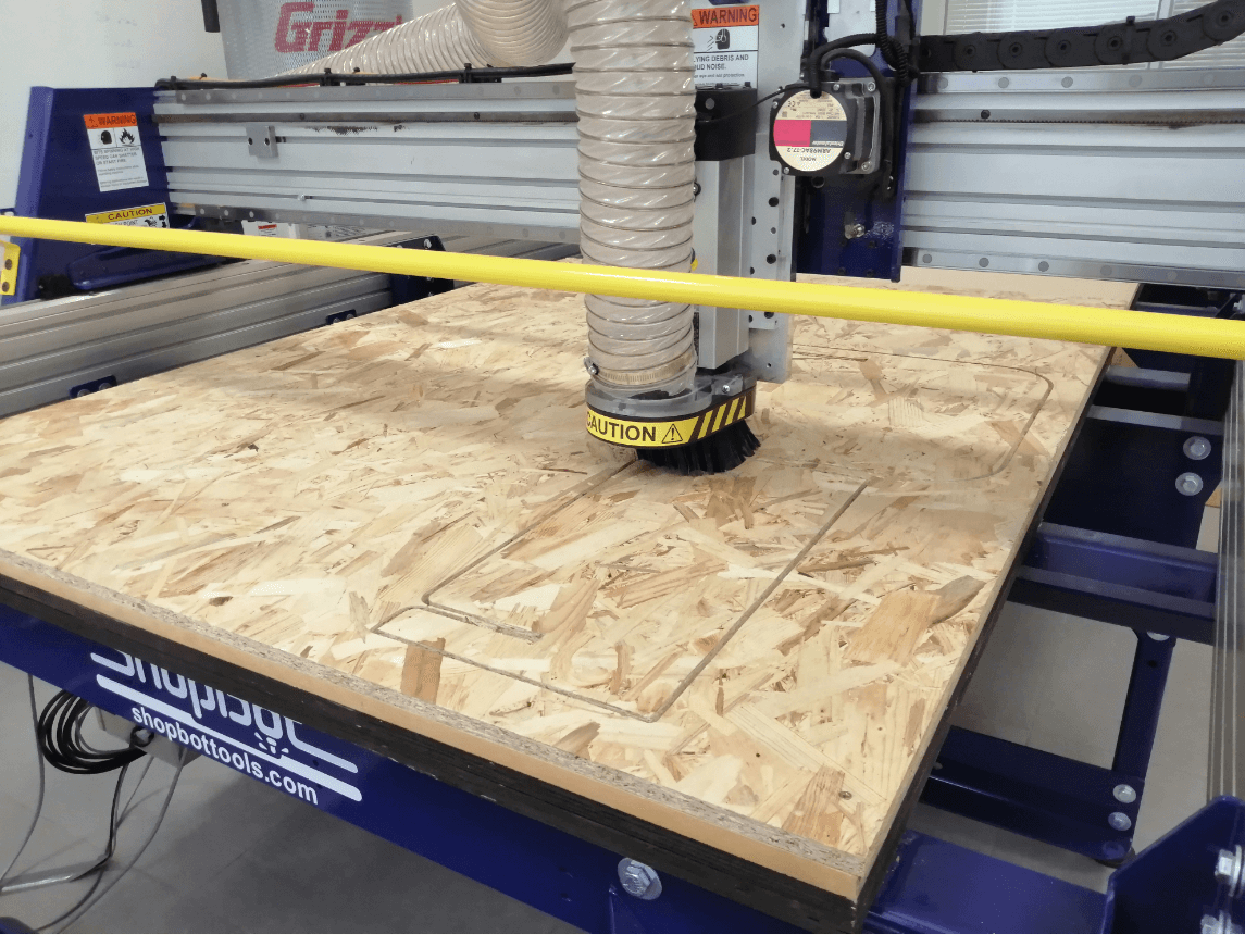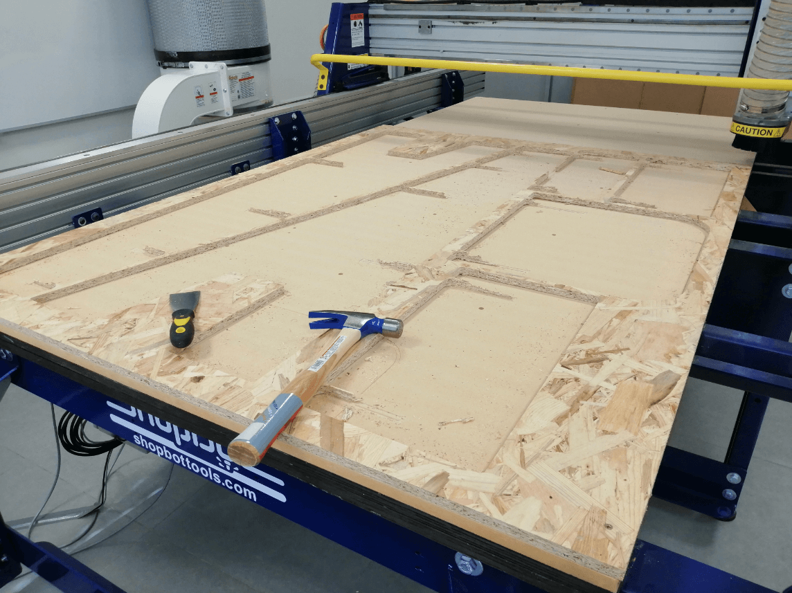 First we must load our toolpaths (holes and cut) to the shopbot software and then continue with the assembly, the holes will be the first to be made and will not pierce the material, they will only leave a mark that we will use as a reference to place the screws with the help of a drill.