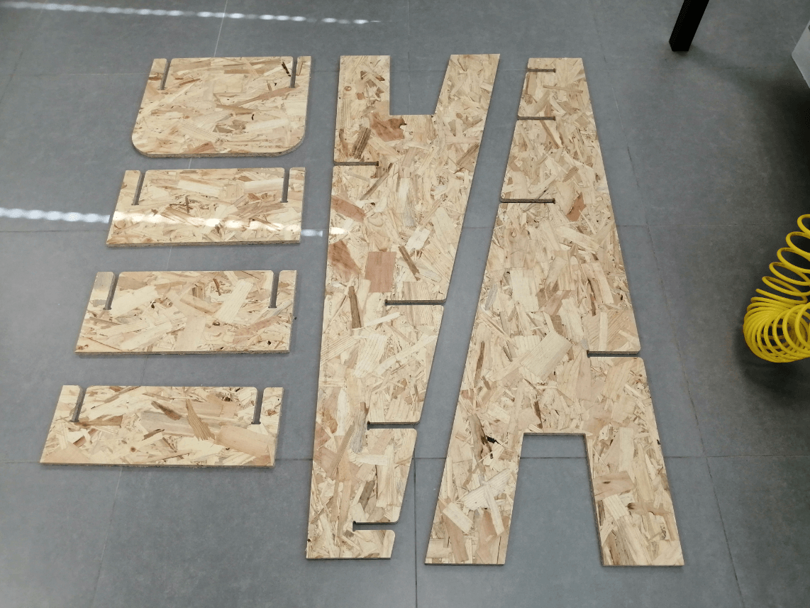 The most important part is to define the material that I am going to use, since the laboratory has that maker essence, I decided to work with OSB (1.2 x 2.44 meters and 15mm thickness), the piece will be designed in Inventor, later processed in Vcarve and finally machined in our Shopbot.