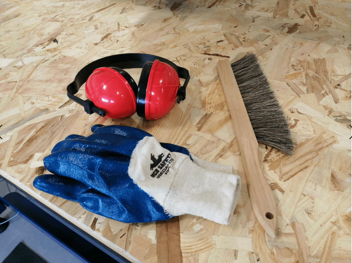 I consider this assignment important because we are going to work with a machine of considerable size and that it can easily cause an accident, the first thing to do is use the appropriate equipment to proceed to work with the machine, I decided to use safety glasses, gloves , hearing protectors and a brush to clean the remains of OSB that may remain after the process (it is important to clarify that the brush should not be used while the machine is running)
