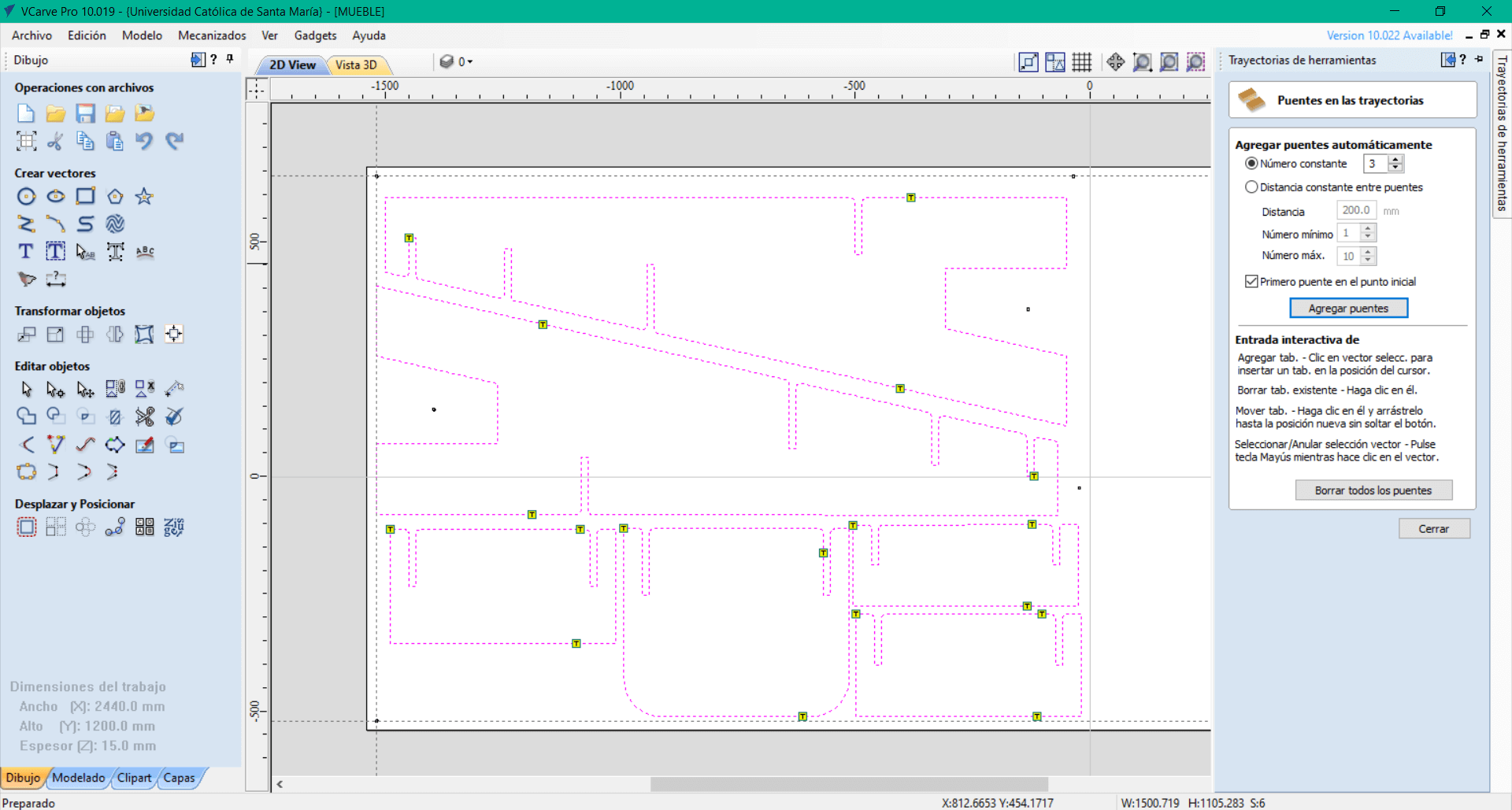 Then we can import the vector files and with the move option we can display the pieces in all our OSB plate, an extra step would be to use the Join open vectors tool that allows us to solve some errors when importing the piece.