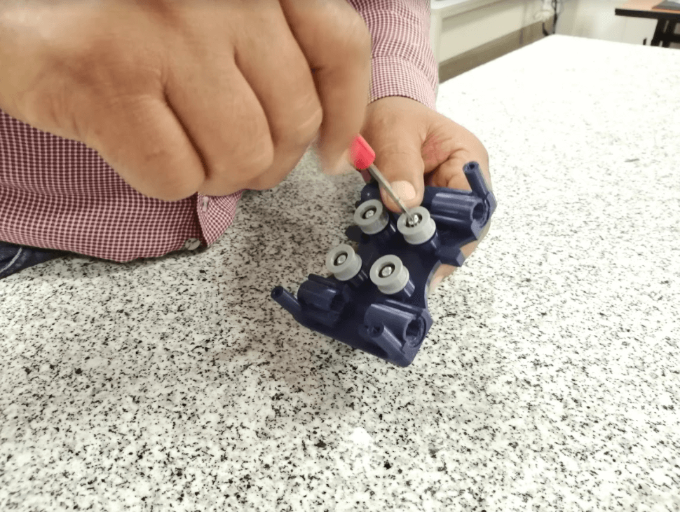 When i thought that the inner diameter of the linear bearing was correct, I realized that now the problem was the outer diameter because when it was fitted with the middle piece it tended to bend a little, as if it were not enough, the rod collided with the part and could not move properly, in a desperate attempt to solve the problem I decided to sand the surface with a dremel, but everything resulted in melted plastic and a useless part.