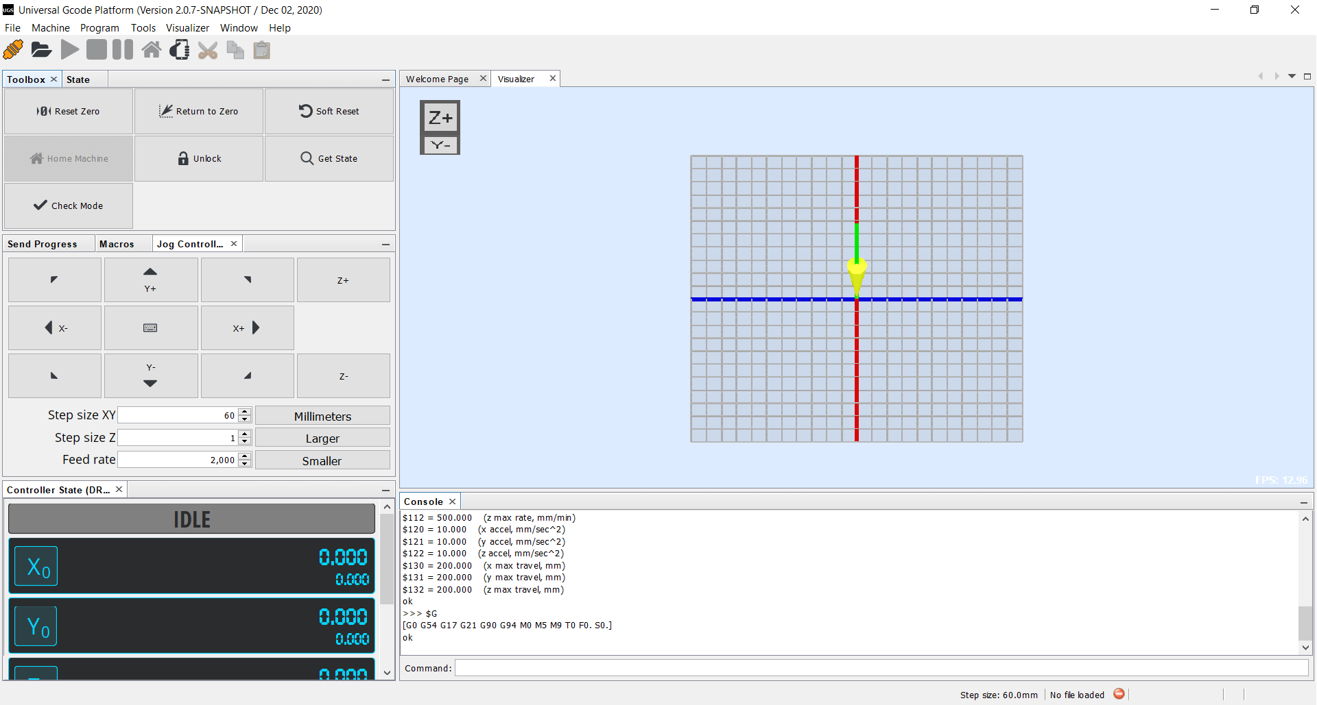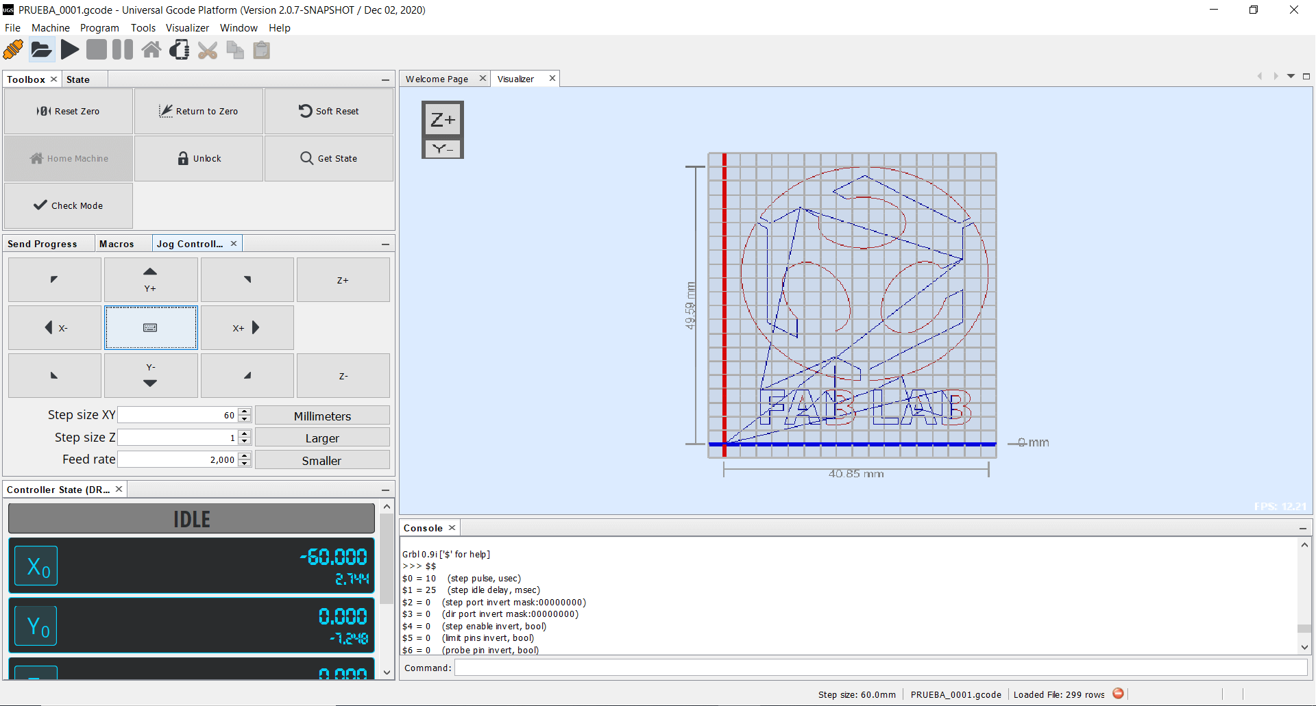 Now we can check that our motors are working correctly using the Jog Controller, the most important thing is to check that the axes move straight and only one axis moves when pressed, otherwise we must check the connection of the motor cables or maybe the GRBL configuration that we upload to our Arduino, fortunately our machine worked correctly and we were able to check parameters such as step distance, speed and acceleration.