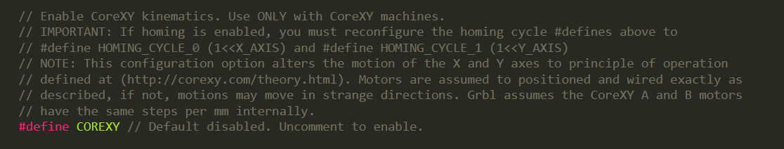 First we must download the grbl - master.zip folder from the GRBL repository, it is super important to check the part marked in red, it indicates that the config.h file is settled to work with a machine that is not CoreXY, so what we must do is modify it, the best way to perform this procedure is to first install that library by default in the Arduino IDE and then look for the path where the library was installed and open the file with a text editor, in this case I use Sublime Text 3 and look for the line of code referencing CoreXY and I disabled it as a comment, you need to comment on the settings above.