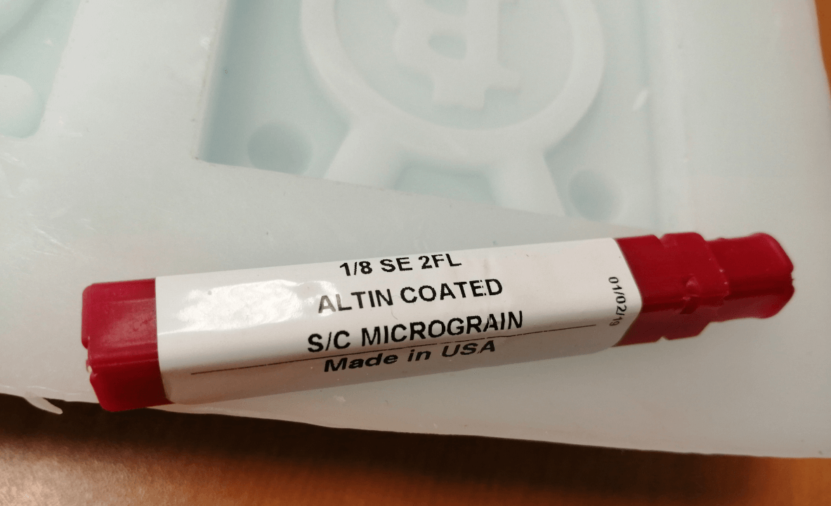 For the milling process, both for the rough cut and finish cut I decided to use a 1/8 SE 2FL endmill, because my mold did not have very complicated details and I followed the suggestions of my instructor, as you can see the finish result was very good and due to the size of the endmill the milling time was considerably reduced.