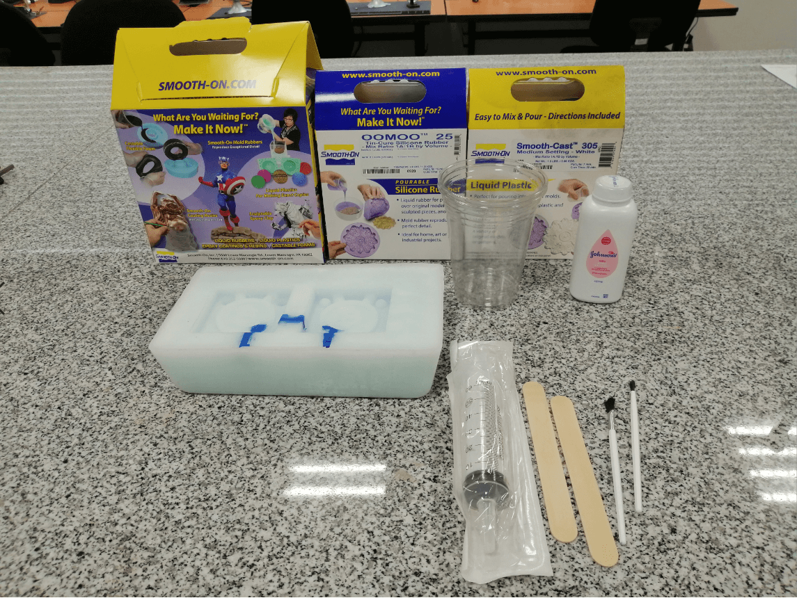 [ ] Reviewed the safety data sheets for each of our molding and casting materials, then made and compared test casts with each of them? I was able to get it to work because most of the compounds were expired.