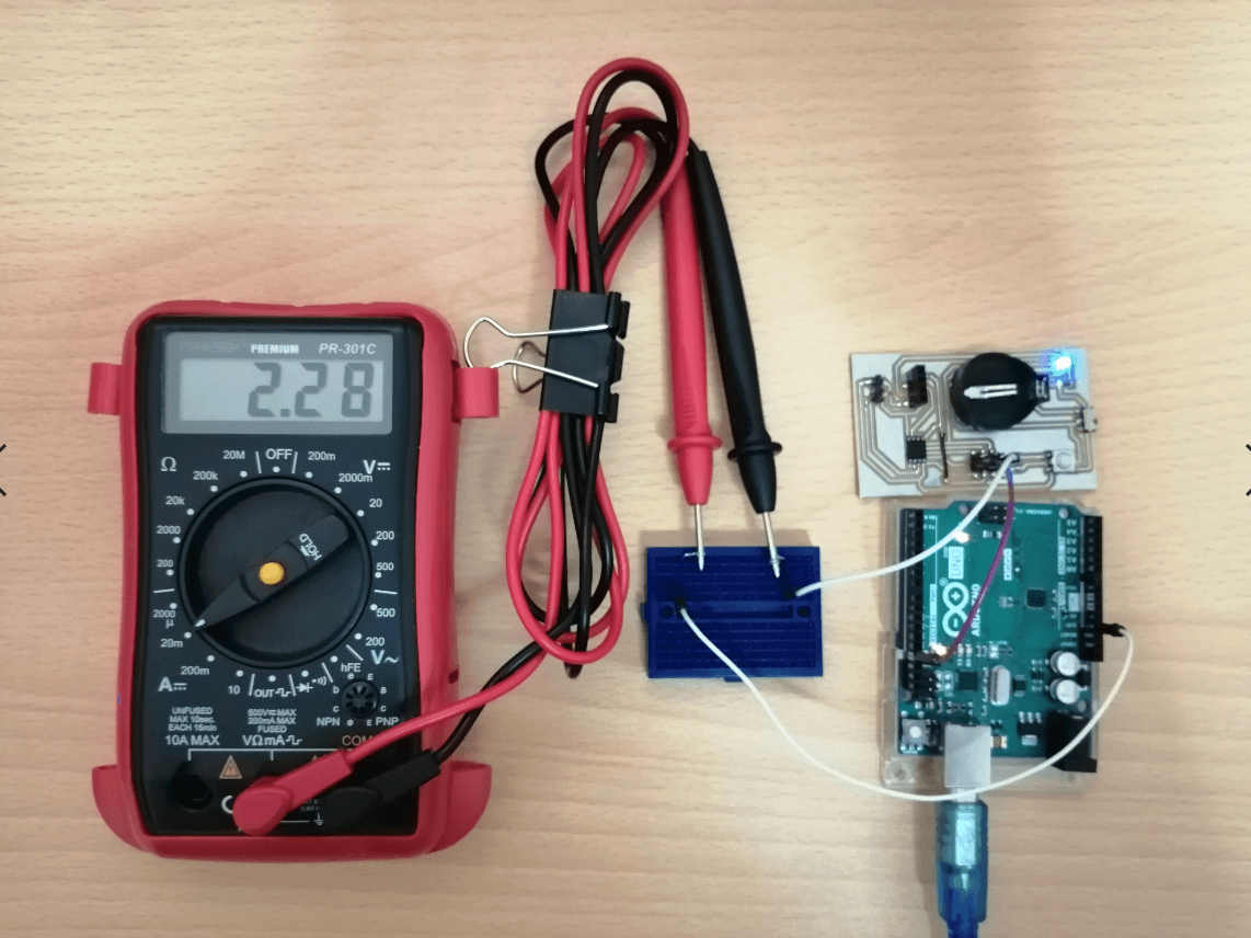 - The current consumption of the board (ATtiny85) + LED (blue)