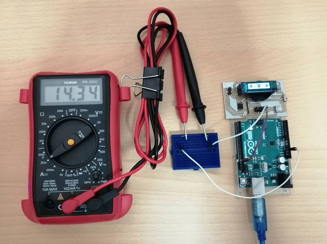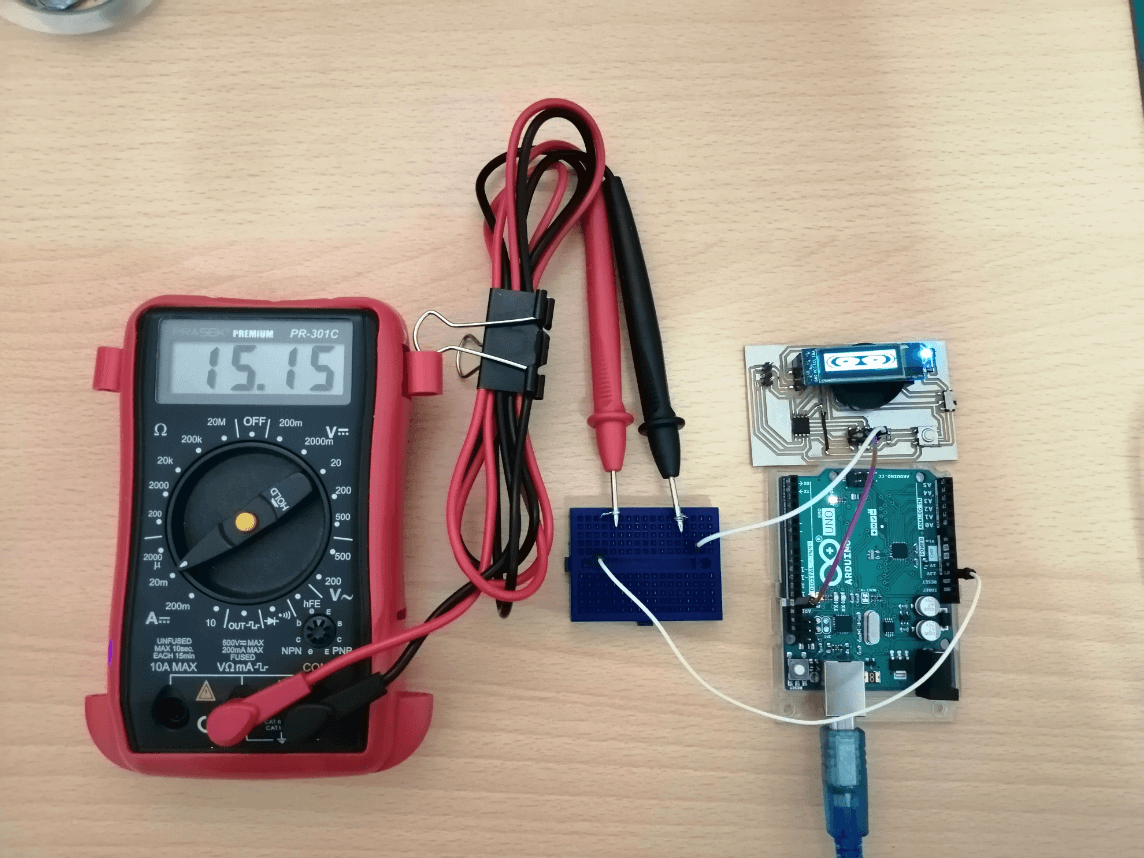 To measure the load current, I will use my multimeter connected in series to the 3.3V supply provided by the Arduino UNO and I will progressively turn on or enable some components.