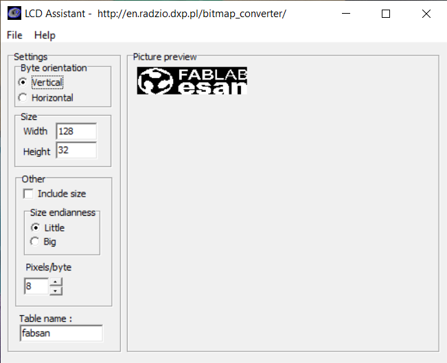 Searching the internet I found the image that should really be displayed, a Mario Bros mushroom and on the right side the name of Oscar Liang, just at that moment I understood that all the images shown were on 128x64 screens, so I think the image is in that format, what follows will be to create my own 128x32 Bitmap image, according to a youtube tutorial it can be done in Paint and then use LCD assistant to convert it into instructions that I can load in the code.