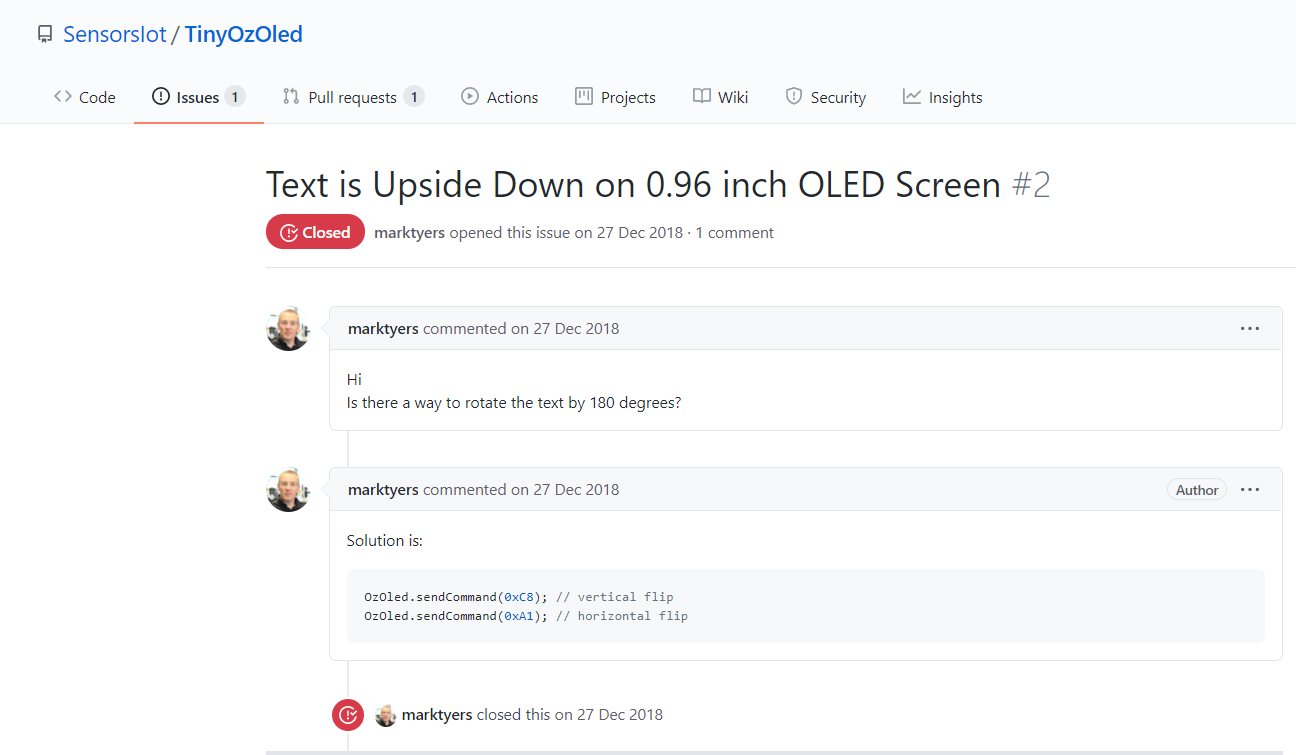 Well on the positive side we have an image shown on our OLED screen, but it is inverted and incomplete, now it is necessary to identify why these 2 bugs appeared, it will be necessary to delve a little into the documentation that exists about the libraries that we are using.