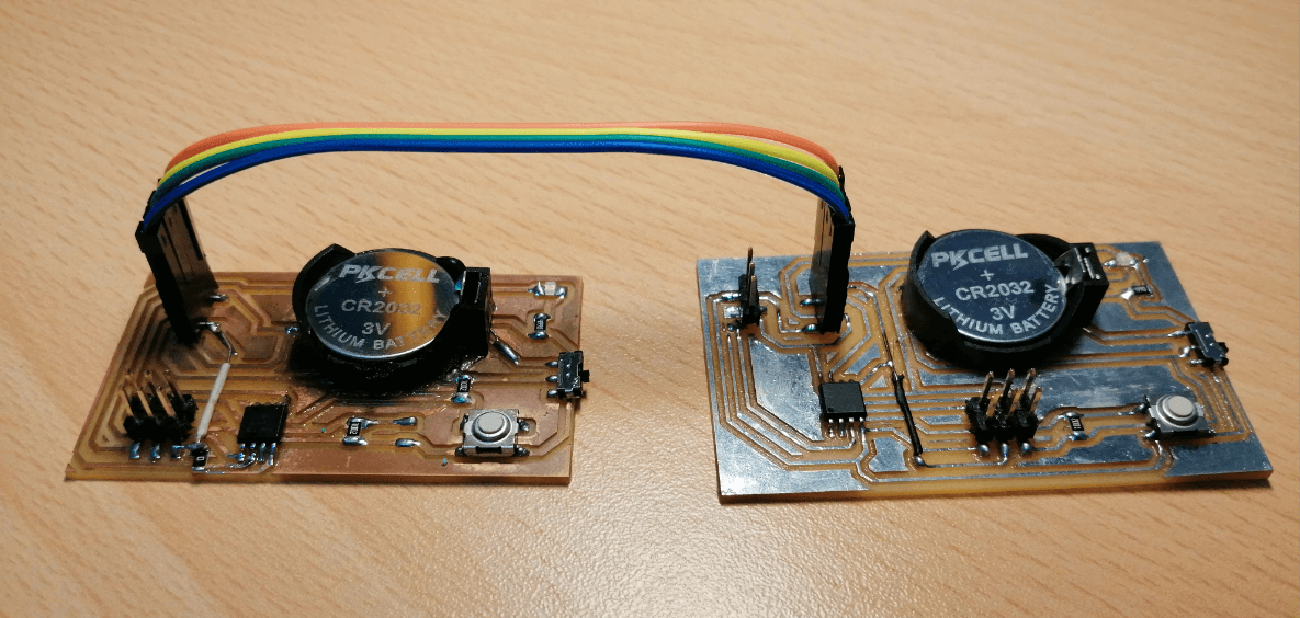 This week’s assignment consists of establishing communication between 2 boards, either wired or wireless using a communication protocol, due to the short time I have, I will apply an ingenious solution and enable the first version of the board that I use (with some faults fixed) to be able to communicate both and turn on an off a led.