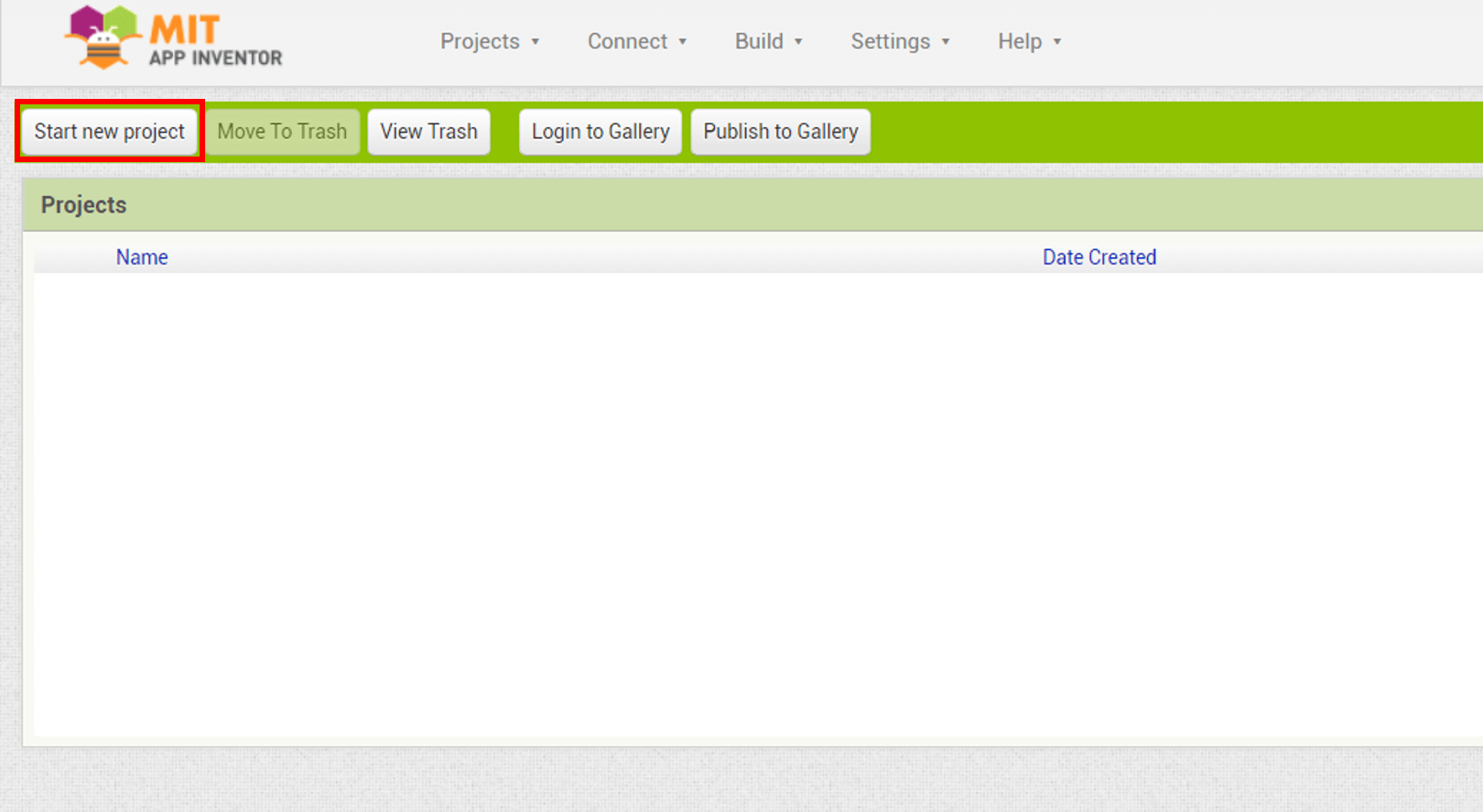 I decided to use MIT App Inventor to develop my bluetooth application, because it seems simple and according to what I investigate it uses blocks for programming, well the first thing we have to do is go to the link of the online application MIT App Inventor and create an account (I will not go into detail because it is intuitive). Then we select on Start new project