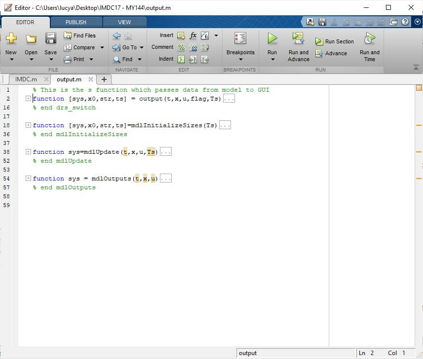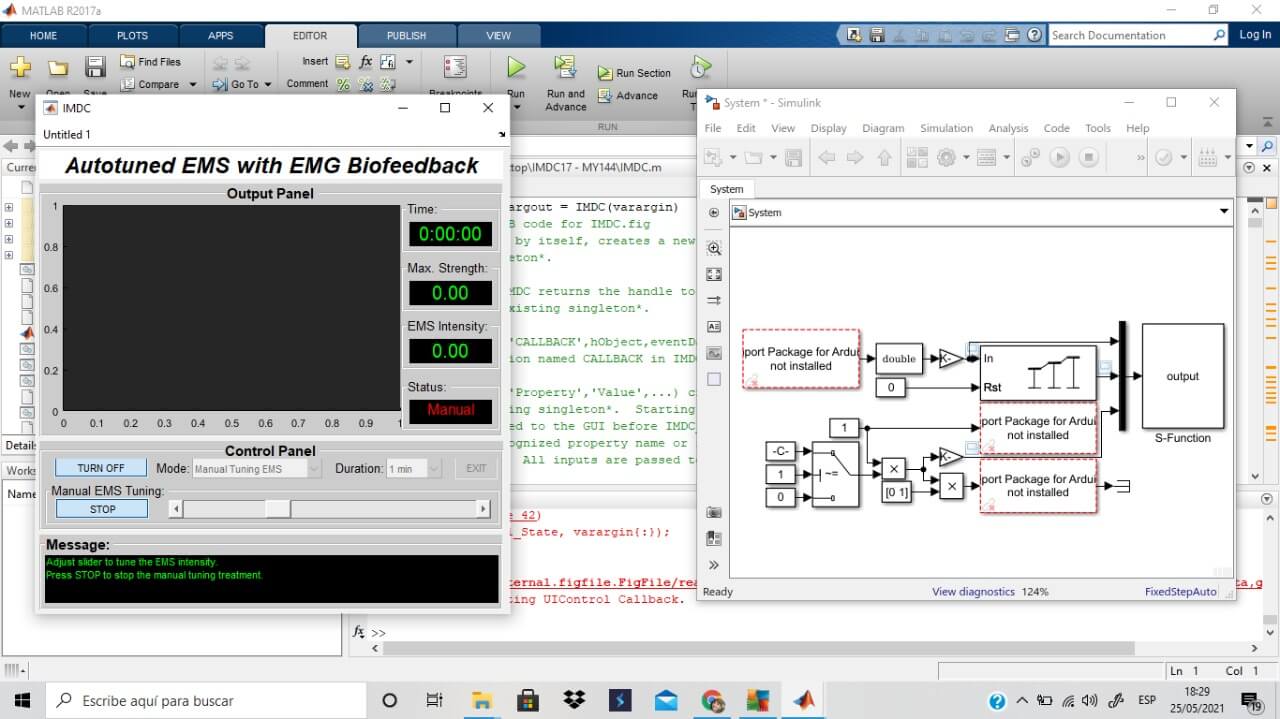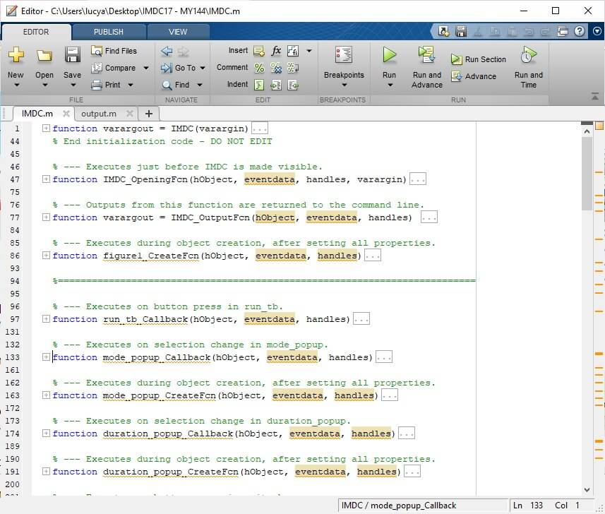 The files attached should be placed in the same path. Then, we can run the IMDC.m using MATLAB to initialize the GUI and the Simulink diagram. Once the user click on the TURN ON push button in the GUI, the Simulink will starts running the simulation in real time. The user can play around with the other buttons to see the behavior of the system through GUI.