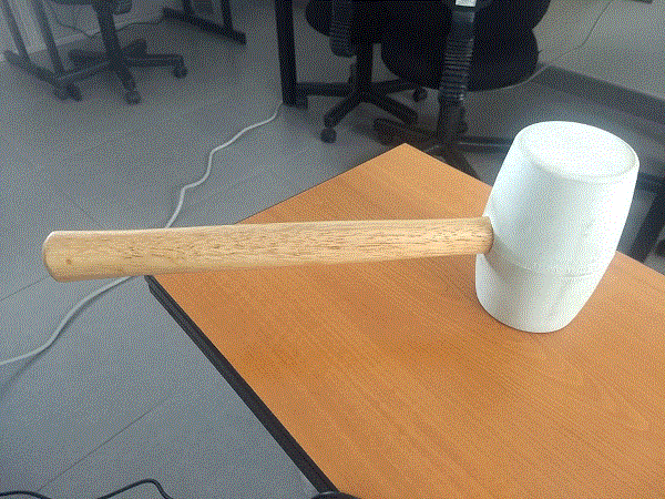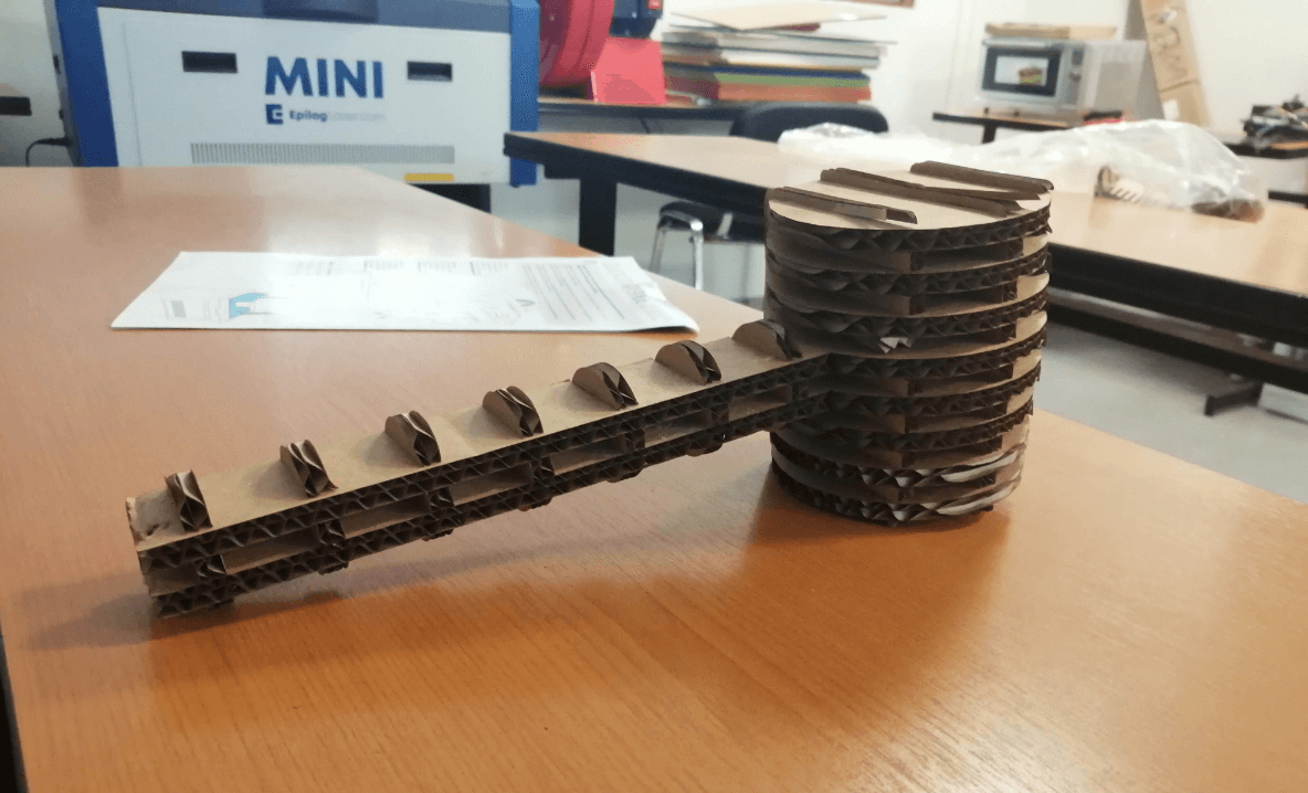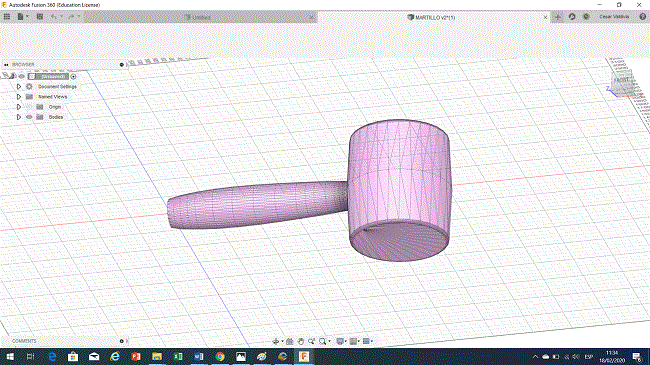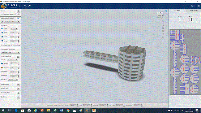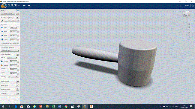 I decided to use as a reference the rubber hammer that we have in the laboratory to model it in 3D Fusion 360 as a solid and then enter it into Slicer to make a piece made up of different cross-sections, the material that I will use in the cut is BC flute corrugated cardboard (6.60mm thickness).