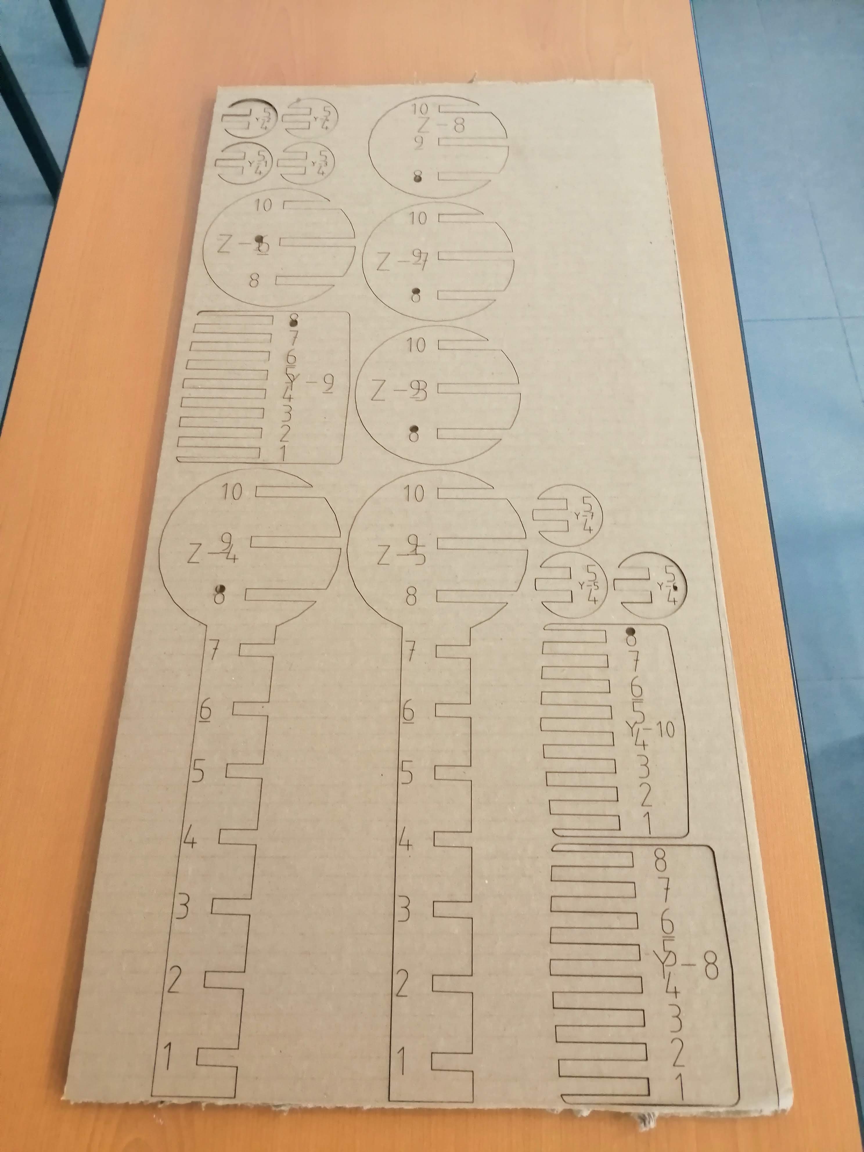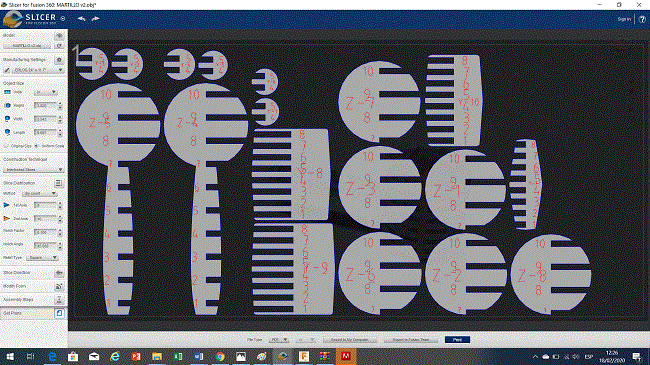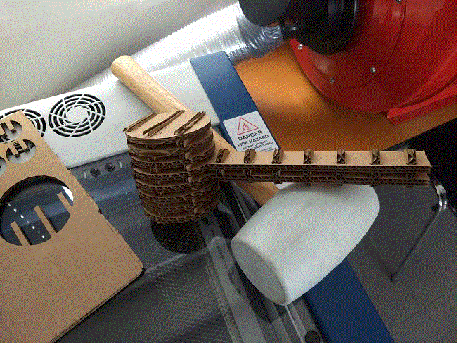 Once all the pieces were cut in our Epilog cutter, we proceed to make the assembly using the reference numbers of each of the pieces and following the diagram available in Slicer. We finished with a hammer model ready to use as a mold for our composites.