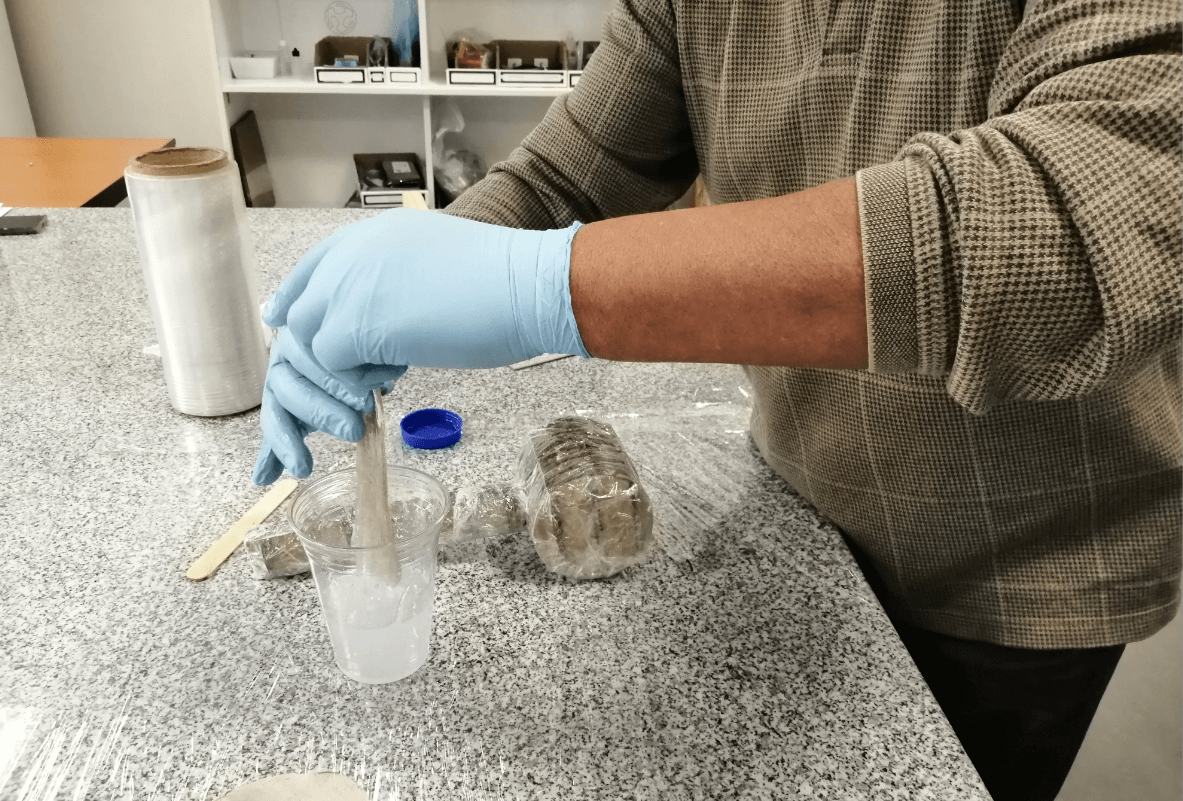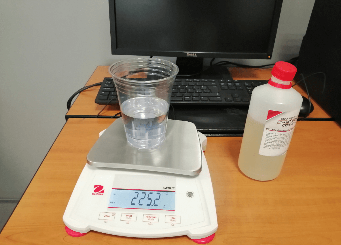 The resin mixture was not that complicated, to start it was only necessary to mix 2 parts of A with 1 of B, and to make the mixture we do not worry about the formation of bubbles because we will soak the linen parts in it and then we will drain them.