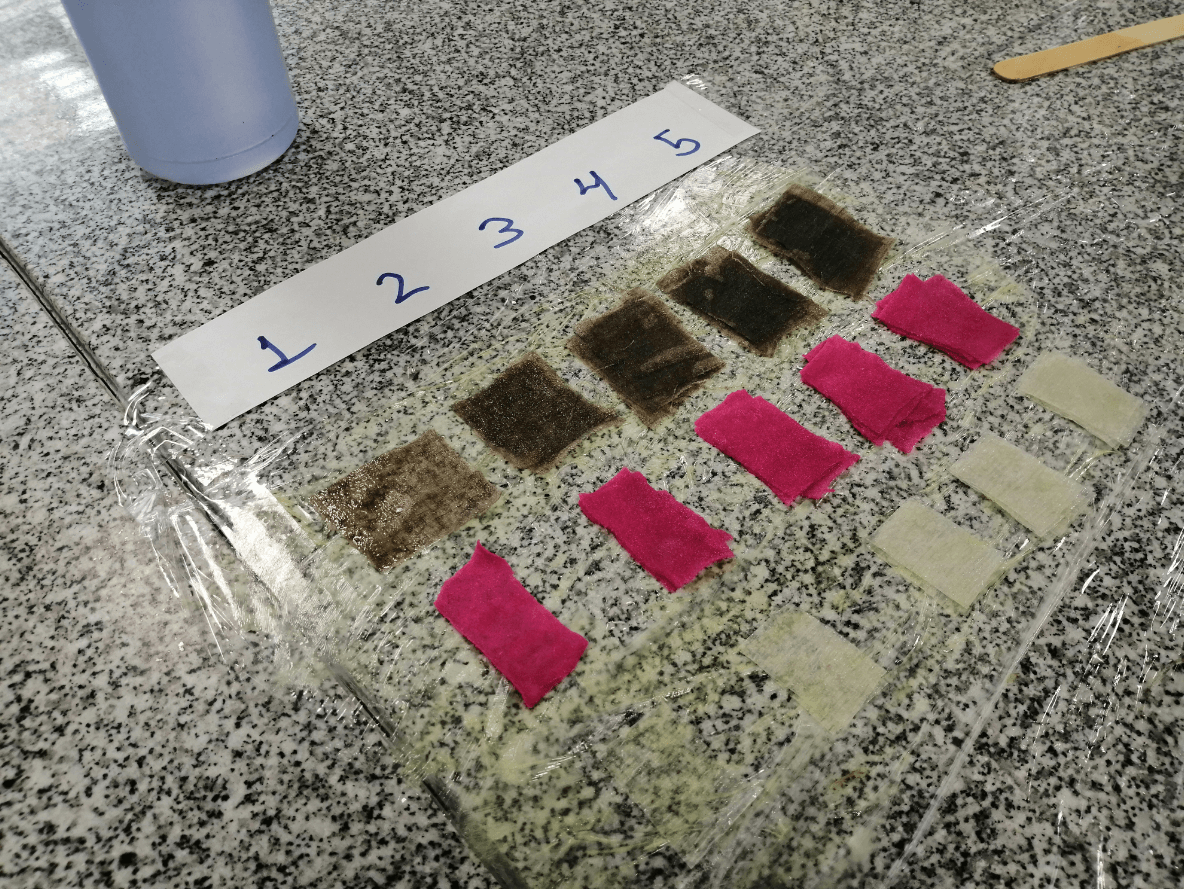 I decided to record all my observations in a comparative table to better reflect what was observed, but as a more outstanding conslusion I can affirm that the cotton was the one that presented more hardness, I assume that because it could absorb more resin, I am not very sure, another outstanding thing is that the linen behaved better than the paper towel, but it was not an extreme difference.