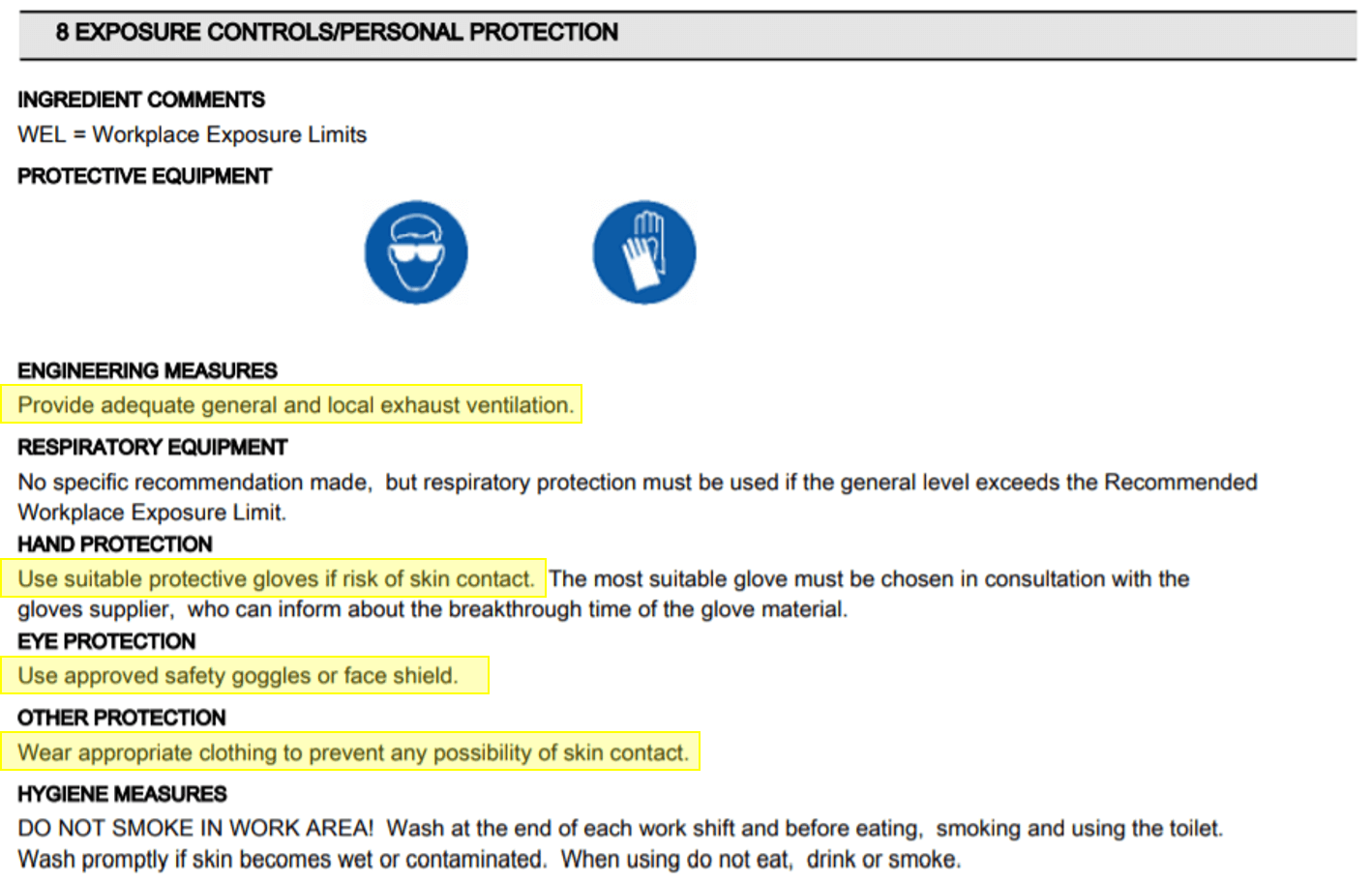The safety data sheet, as its name indicates, tells us about the parameters related to safety, I highlight 2 points that I consider important Hazard identification and Exposure control / Personal protection, we must identify the effects that contact with the resin can produce and also the type protection that we must use when handling it.