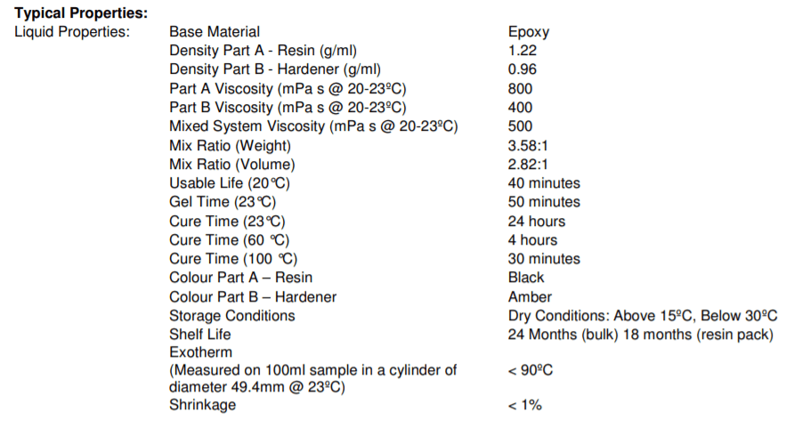 The technical data sheet talks about relevant information for the use that we will give to the resin, curing time, recommended amount of mixing, temperature that it can reach when mixing and other parameters that I detail below.