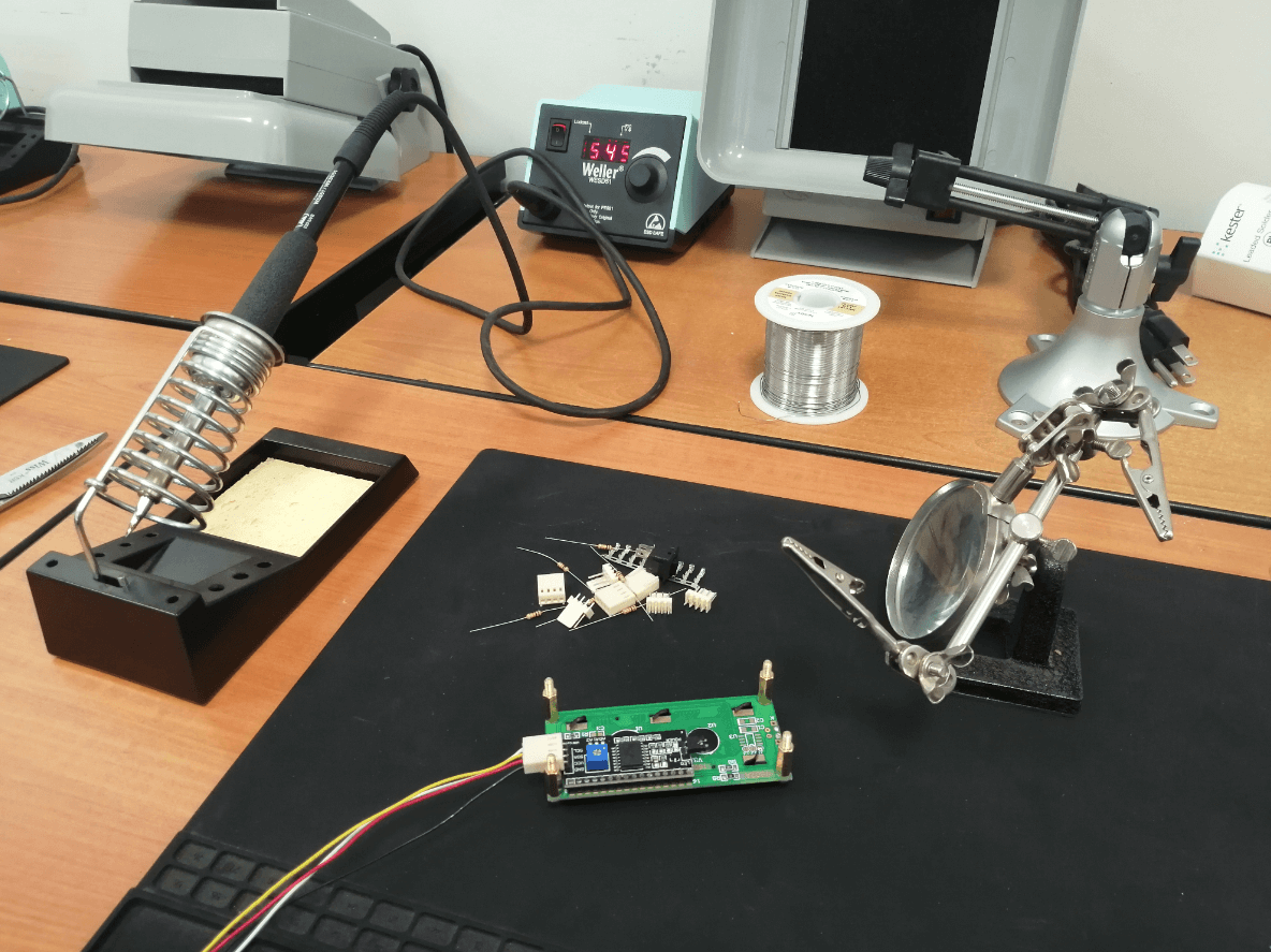I decided to use a top-down approach, I consider that the most important part (also the most complicated) will be the elaboration of the PCB, so to ensure the correct progress of the final project, I will start by dedicating myself to that part. I decided first to test my idea using an Arduino UNO and connecting the LCD screen and the load cell, we first need to solder our I2C module to the LCD screen and also solder the load cell wires to our 24bit ADC.