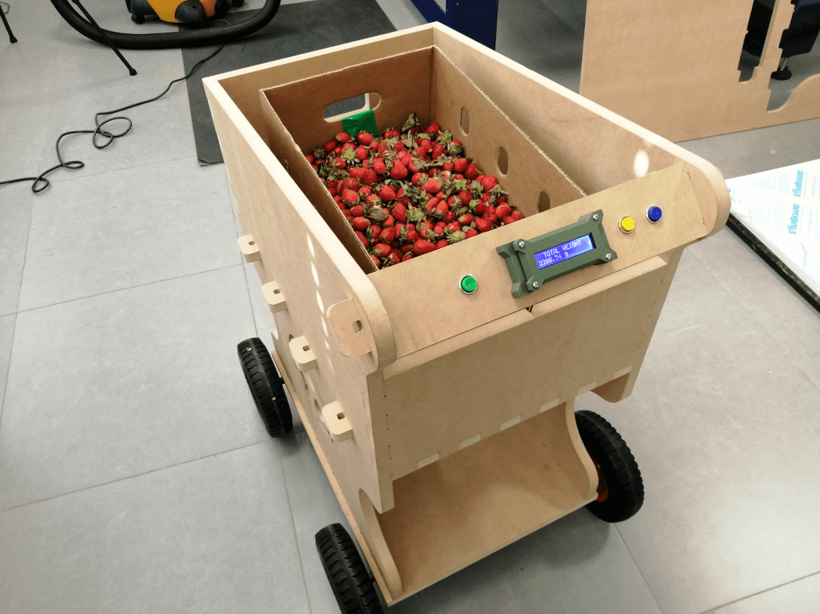 The idea for my final project is to develop a cart for smart harvesting, it will incorporate a scale at the base and allow me to keep track of the total weight of harvested products, it will have an LCD screen that will show that information and also buttons on the handle to carry a count of the harvested points and also other options such as tare the scale according to the container that we decide to use, this information will also be sent via bluetooth to a cellphone to view the information, according to Neil’s advice this project will be a canvas that more later will be possible to work in a more advanced way (changing the bluetooth communication for something with a higher range and uploading the data to the cloud).