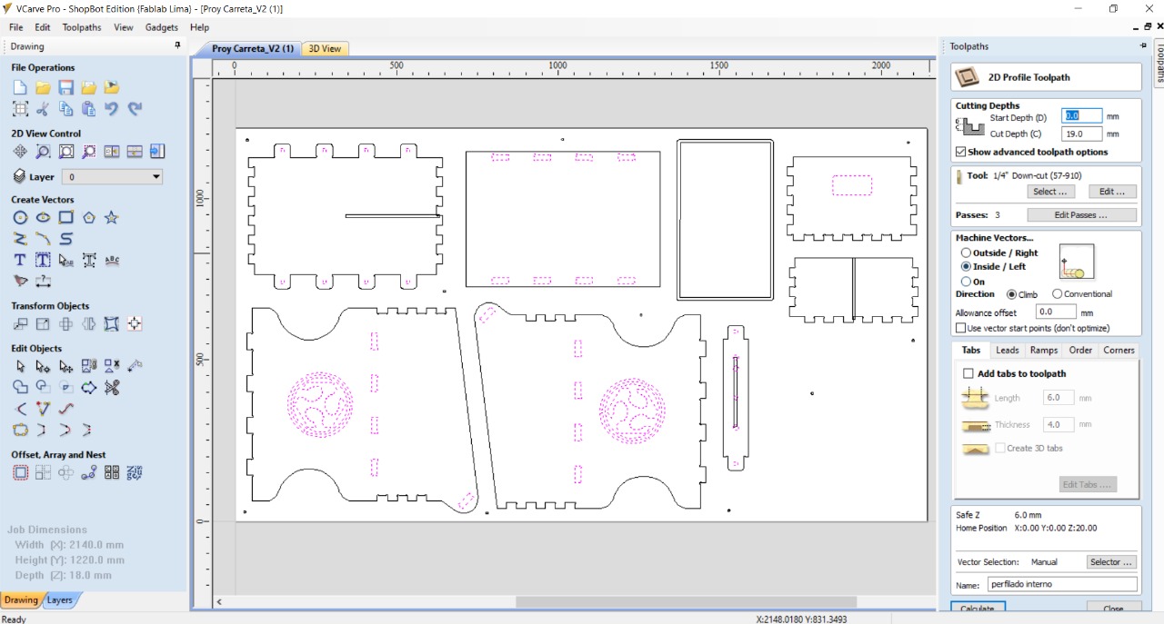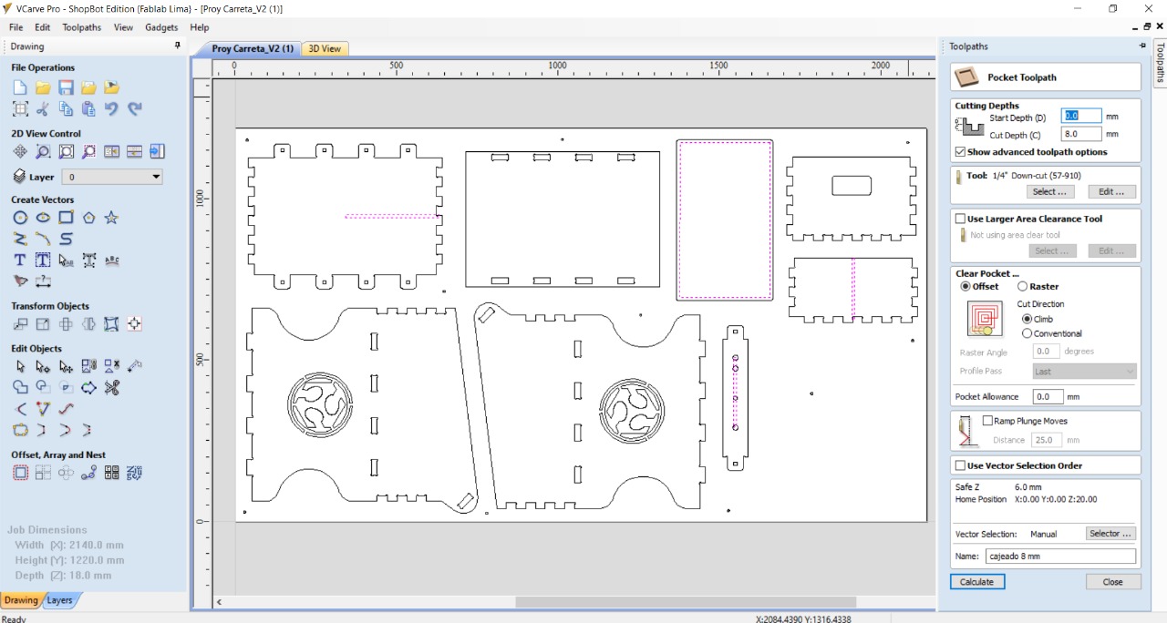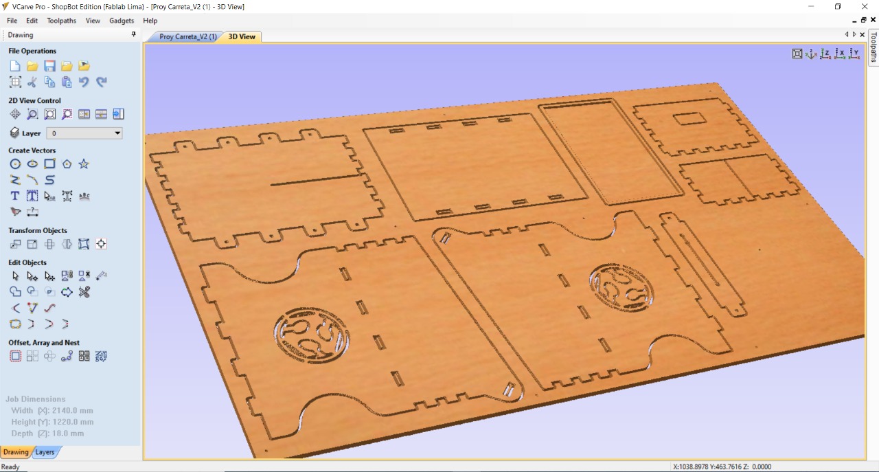 For the frame I will use 18mm thick wooden plates, pieces such as the handle and the covers will be printed in ABS plastic (to guarantee certain resistance to weathering), the covers will be cut in acrylic to visualize the contents of the interior and also protect the LCD screen from water splash or rain, for the elaboration of the PCB I will use the milling machine and most of the electronic components available in the fablab.