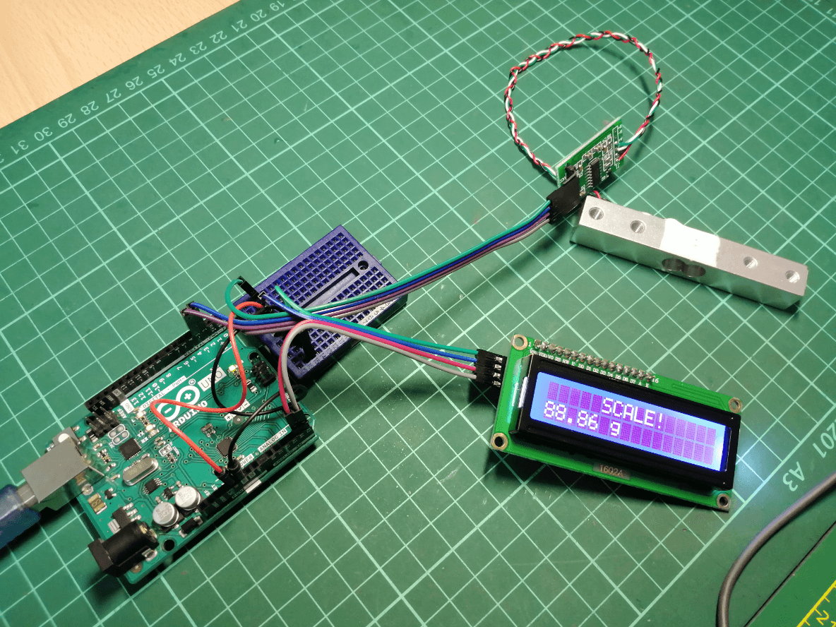 With everything ready for programming, I found an example that was very helpful Electronoobs Strain gauge, I made some modifications to the code and check that everything was working correctly (especially the LCD screen) and perform a simple test without calibrating the load cell, the purpose of this The test was to demonstrate that all the components of my final project worked correctly and also define the pins that I would assign to each one of them.